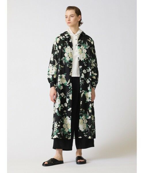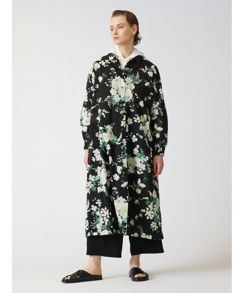 軽さのある60ローン素材を使用したフラワープリントシャツワンピースです。フロントボタンの開閉によって着こなしを変化できレイヤードを楽しんでいただける1枚。細めの腰紐付き。ワンピース全体に大きい花柄が広がったシックなデザインで印象に残るワンピースとなっています。同シリーズ1-260046/イージーパンツと1-230066/ハーフスリーブシャツも展開。