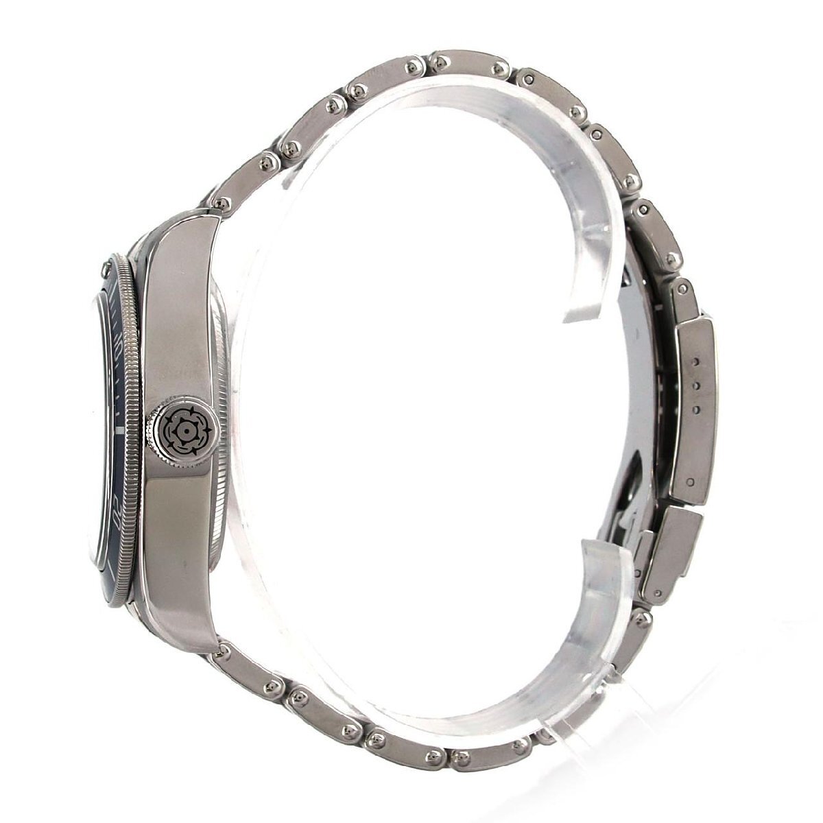 ロレックスのディフュージョンブランドであるチューダー。かつてはロレックスと部品を共用し、ロレックスの魅力を魅力的な価格で体験できるブランドでした。しかし、現在はその方針を止め、チューダー独自の技術とデザインを打ち出しています。そしてこちらのモデルは、2012年に登場した「ヘリテージブラックベイ」。かつてのチューダーに存在した"イカ針"を採用した人気モデル。更にリューズにはさりげなく小薔薇ロゴ入っており、チューダーファンにはお勧めの一本です。