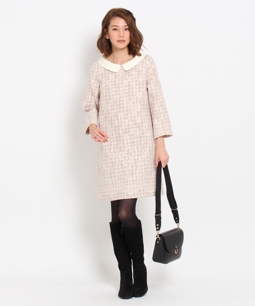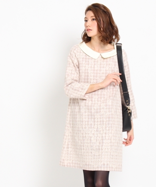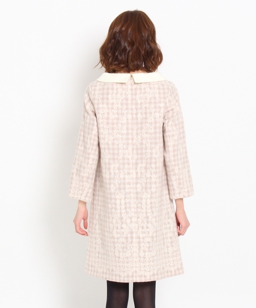 ボンメルスリー ニードルレースチェックワンピース