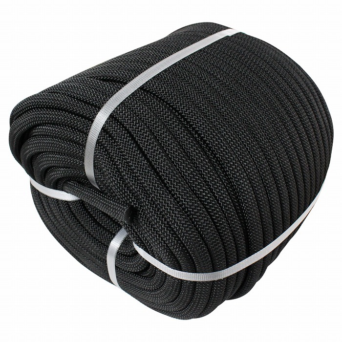24打 14mm 100m 係留ロープ フェンダーロープ ダブルブレイド 黒/ブラック マリン ロープ 船 係船 ロール 14ミリ アイ加工無