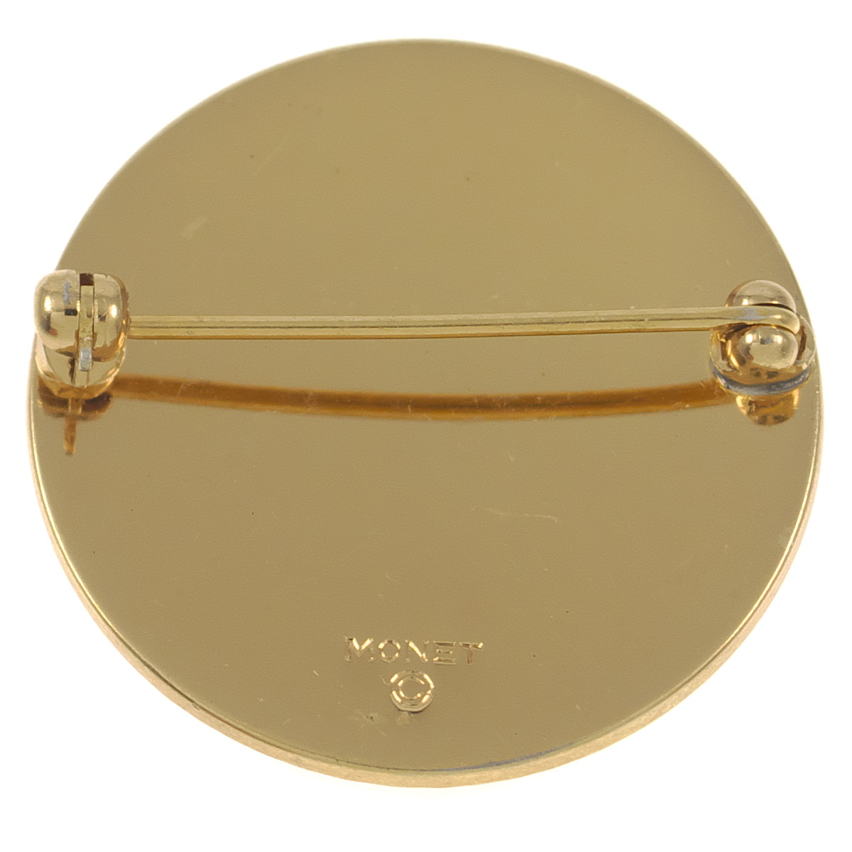 A10453◆【MONET】◆ ラウンドシェイプ 無地 鏡面 シンプル モネ ゴールドトーン ◆ ヴィンテージブローチ ◆