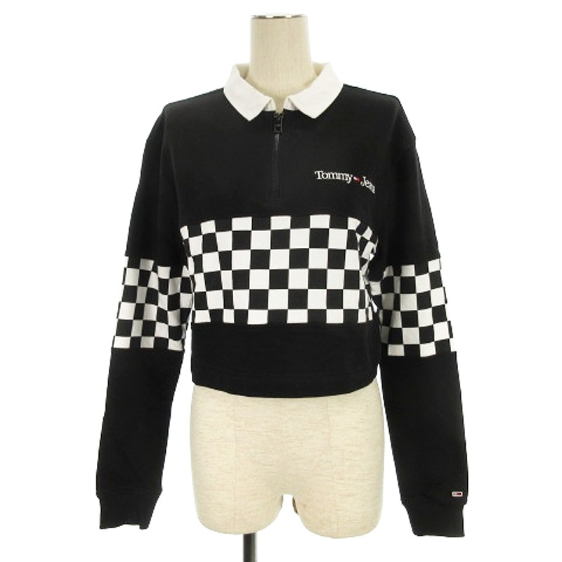 トミー TOMMY JEANS ハーフジップ カットソー 長袖 ショート丈 ブラック XS 250311E ■GY99 レディース