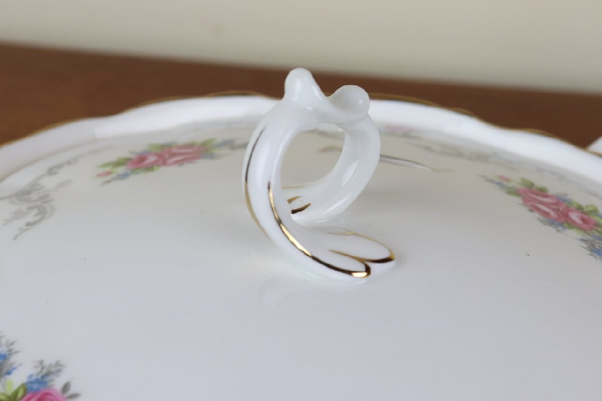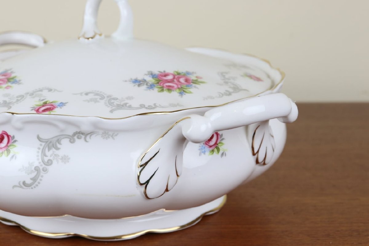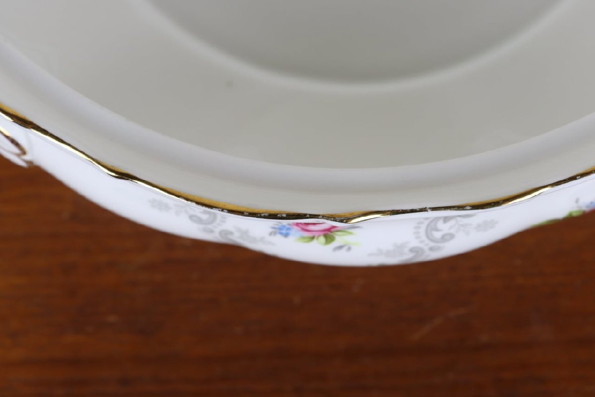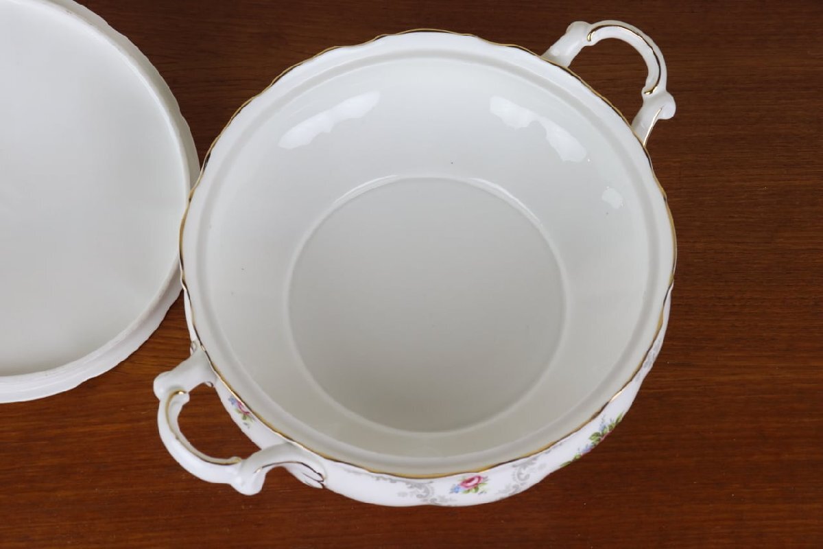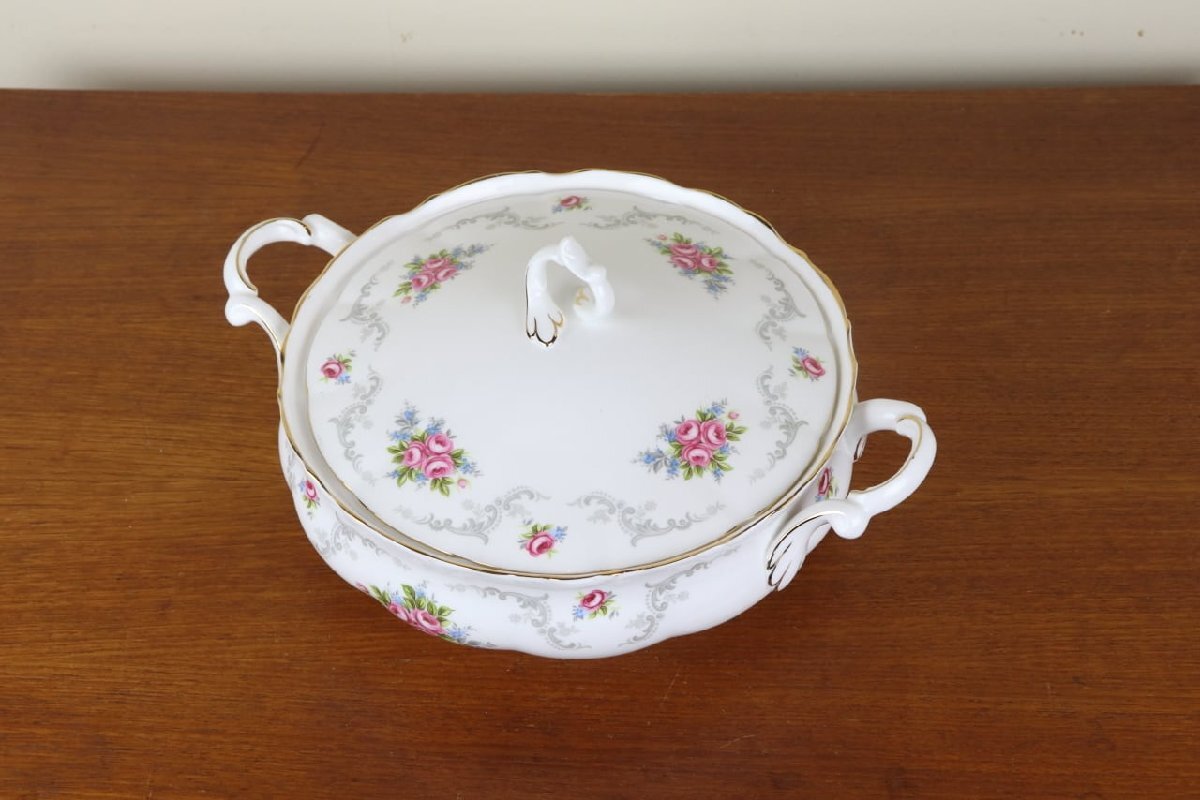 縁にエンボス加工が施され、ピンクとグレーのバラが大変可愛らしいデザインです。