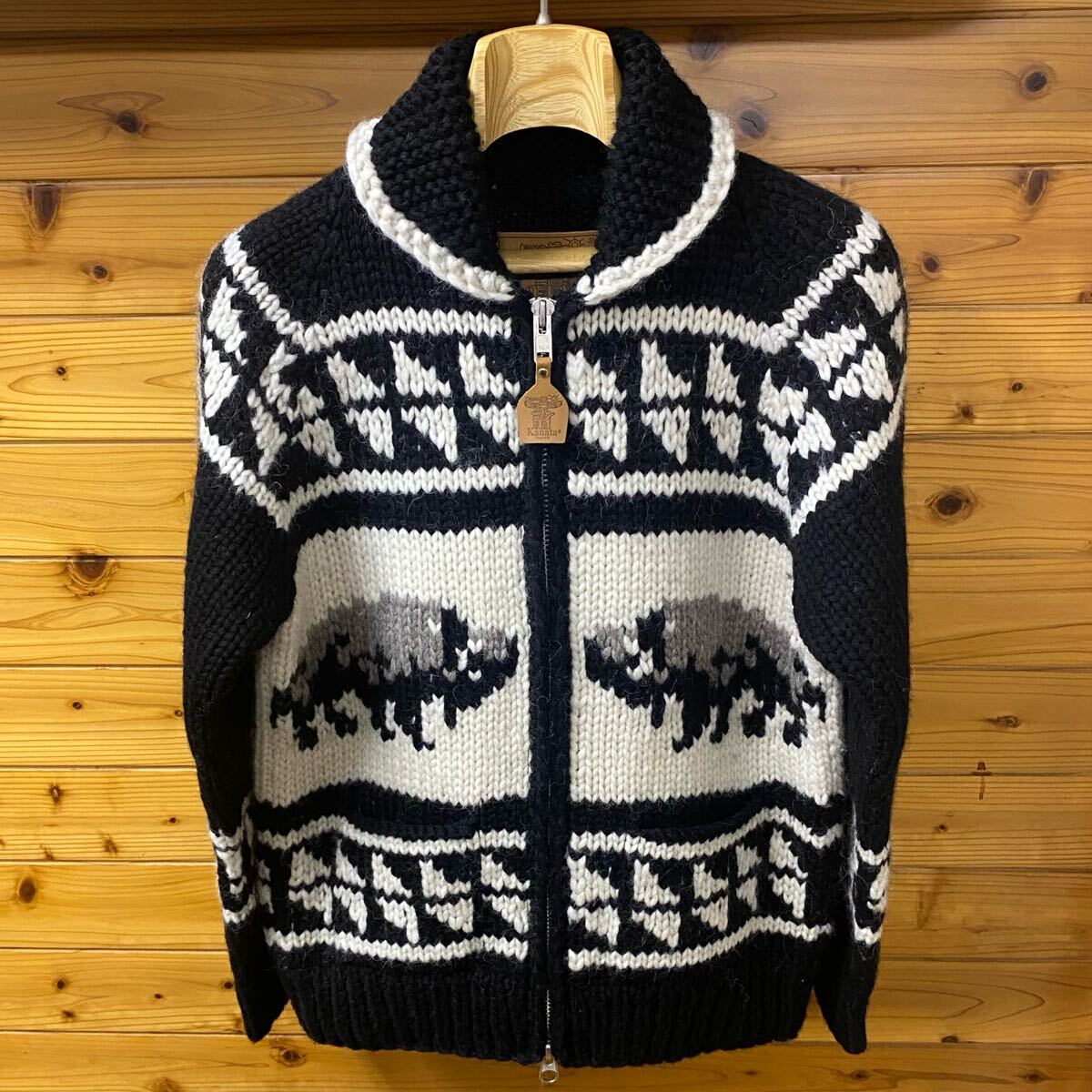 KANATA カナタ カウチンセーター(ローゲージニット) メンズ カナダ製 手編み YKK製ジップアップ 長袖 肉厚 ヴァージンウール100% (WOOL100%) BISON(バイソン)BUFFALO(バッファロー)になります。