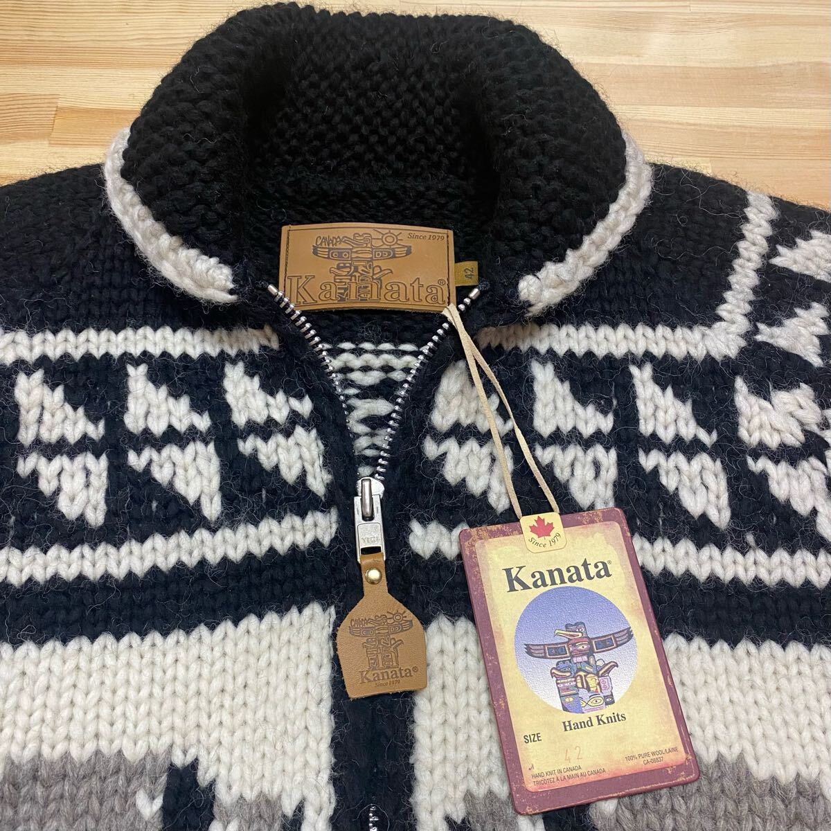 【新品】カナタ KANATA カウチンセーター メンズ カナダ製 手編み ウール100% ニット 長袖 バイソン バッファロー XLサイズ