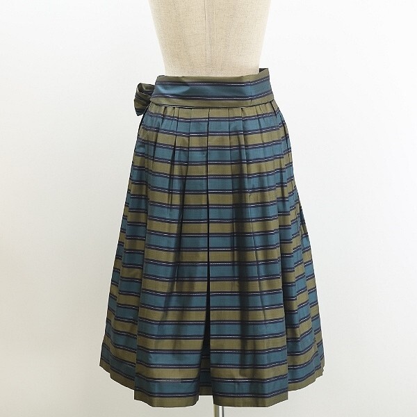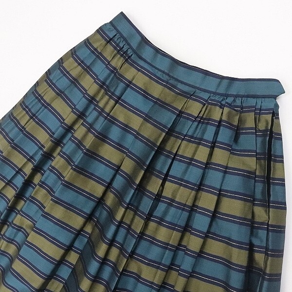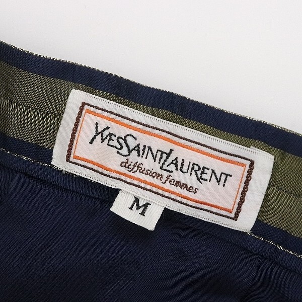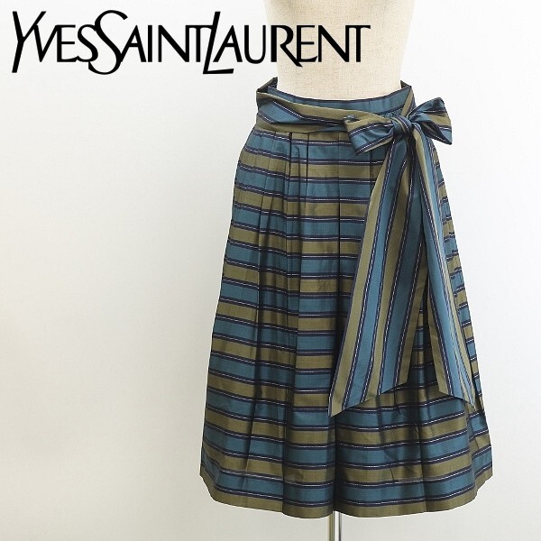 | ヴィンテージ◆Yves Saint Laurent イヴサンローラン シルク100% ラメ ボーダー柄 リボンベルト付 タック フレア スカート M | |