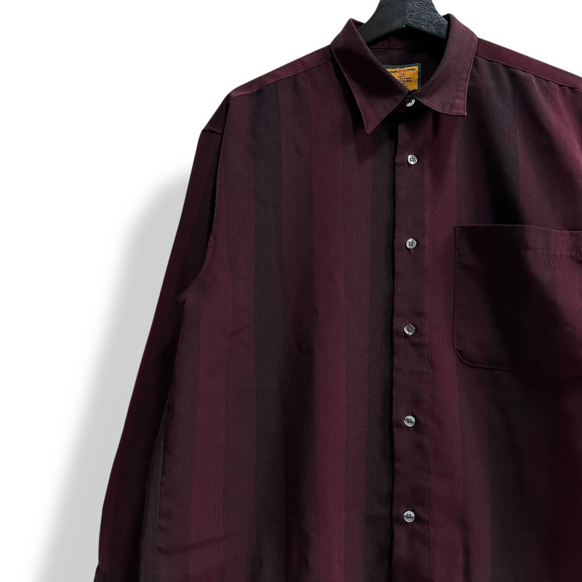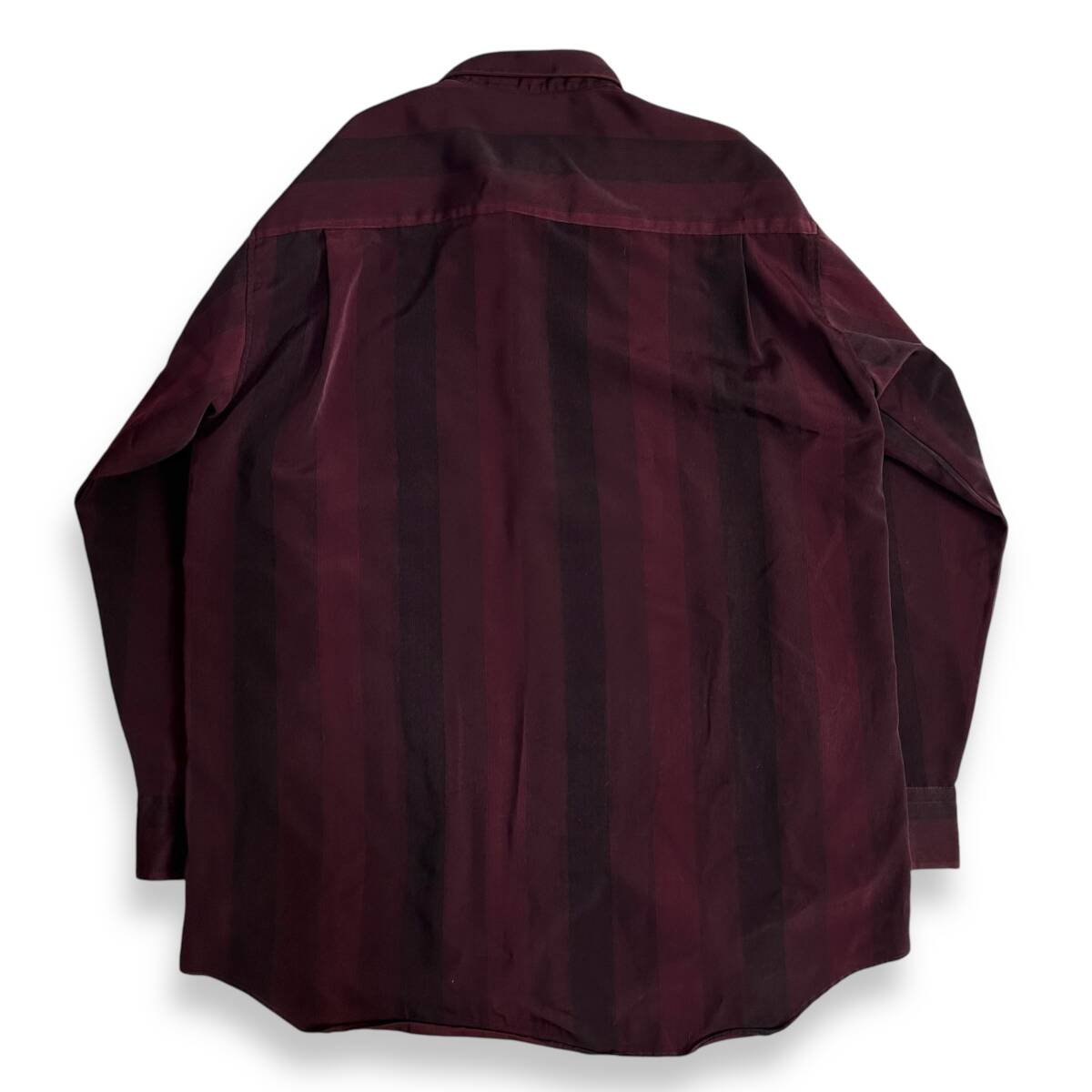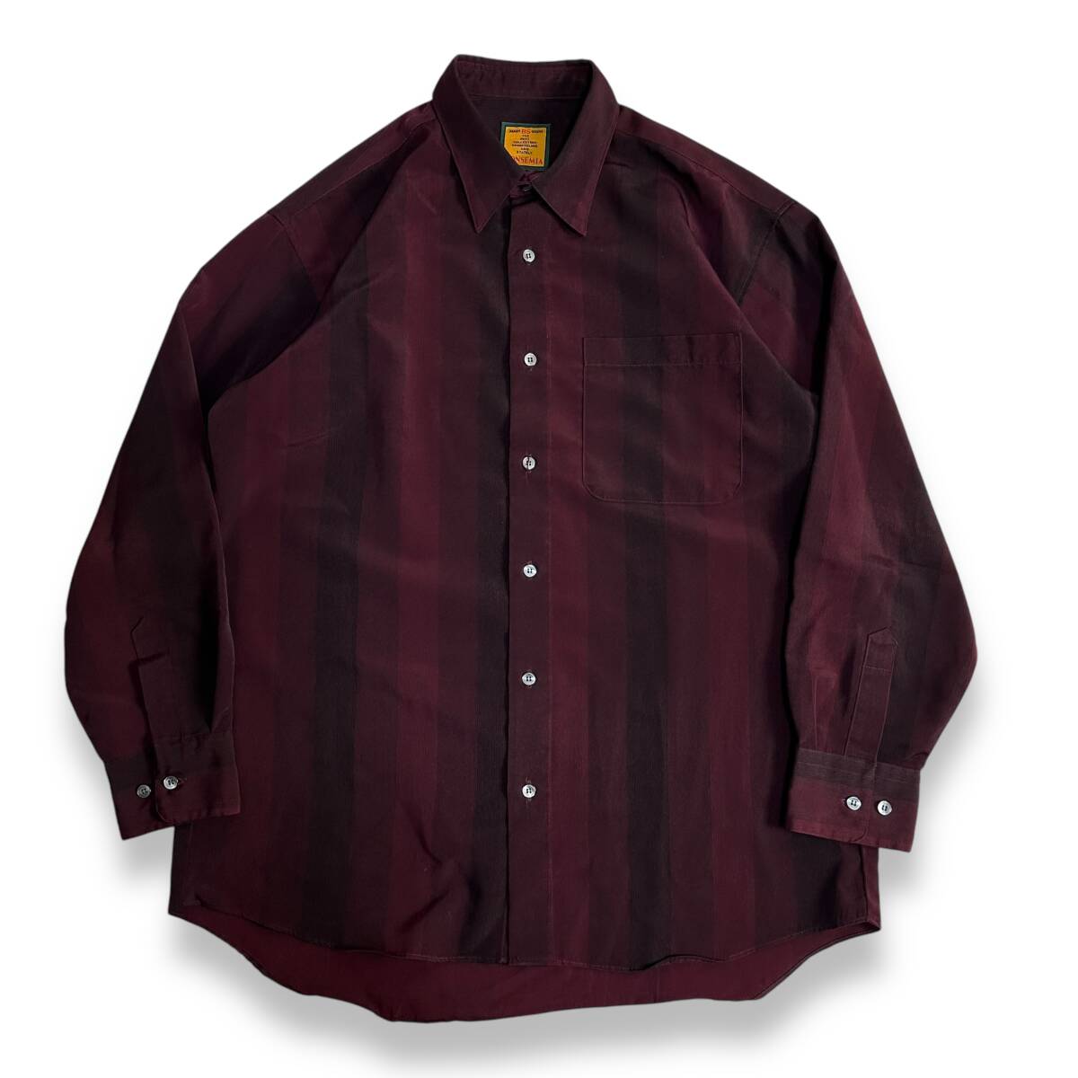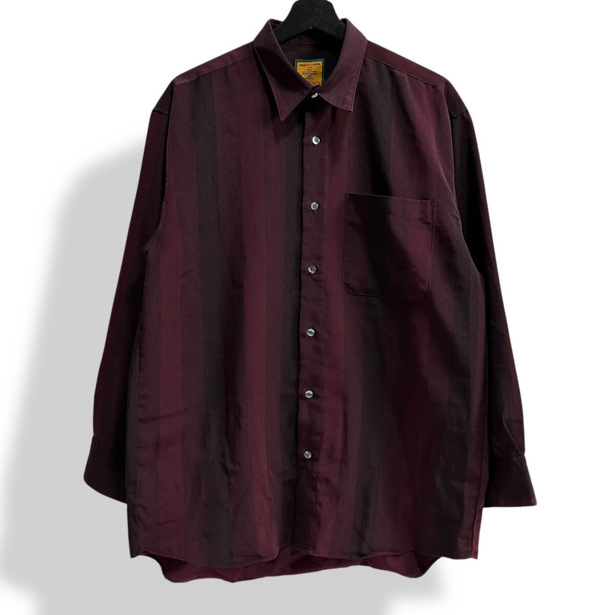 【BONSEMIA】VINTAGE 80s 90s ストライプ レトロビンテージ長袖シャツ オールド 古着 ポリシャツ 昭和レトロ ワインレッド