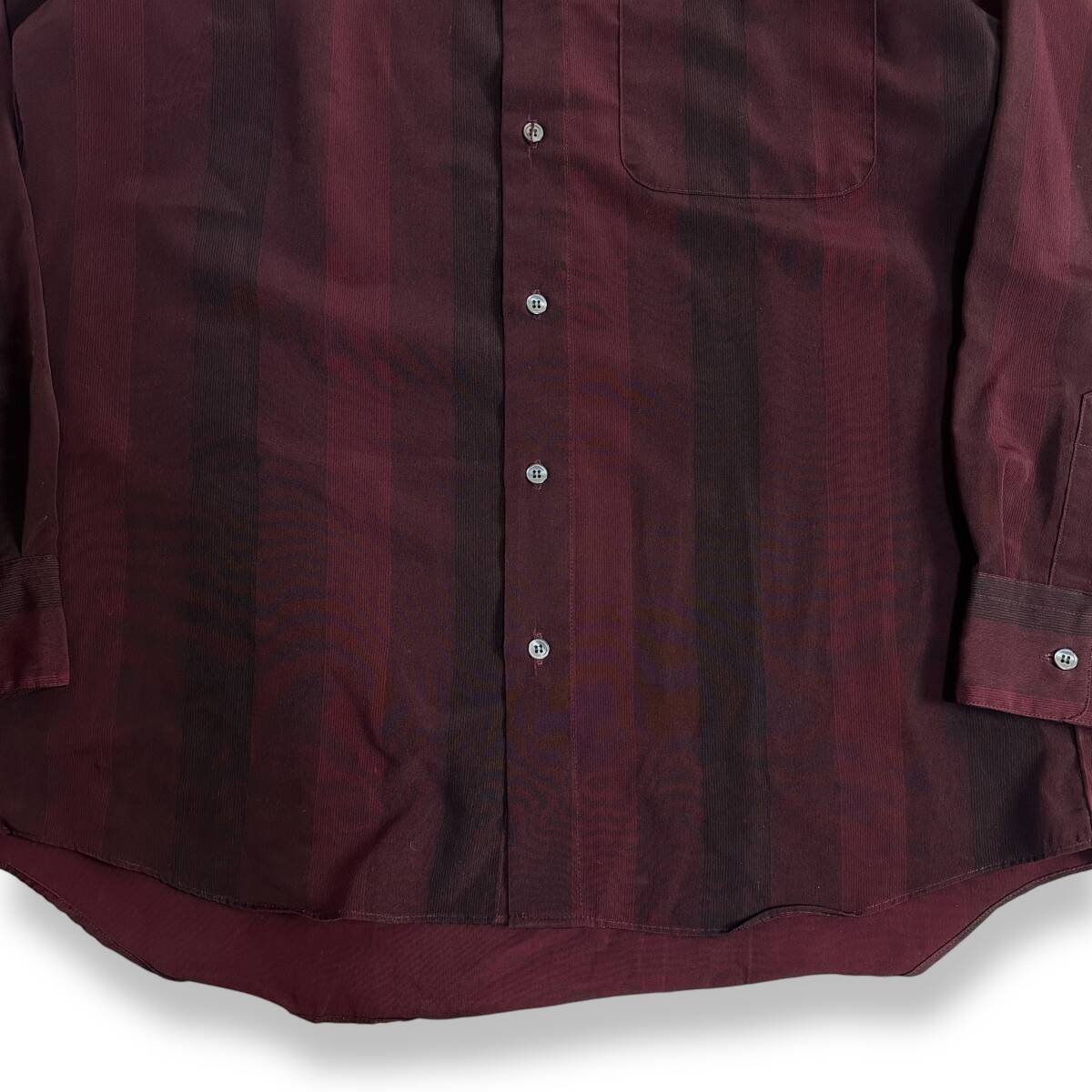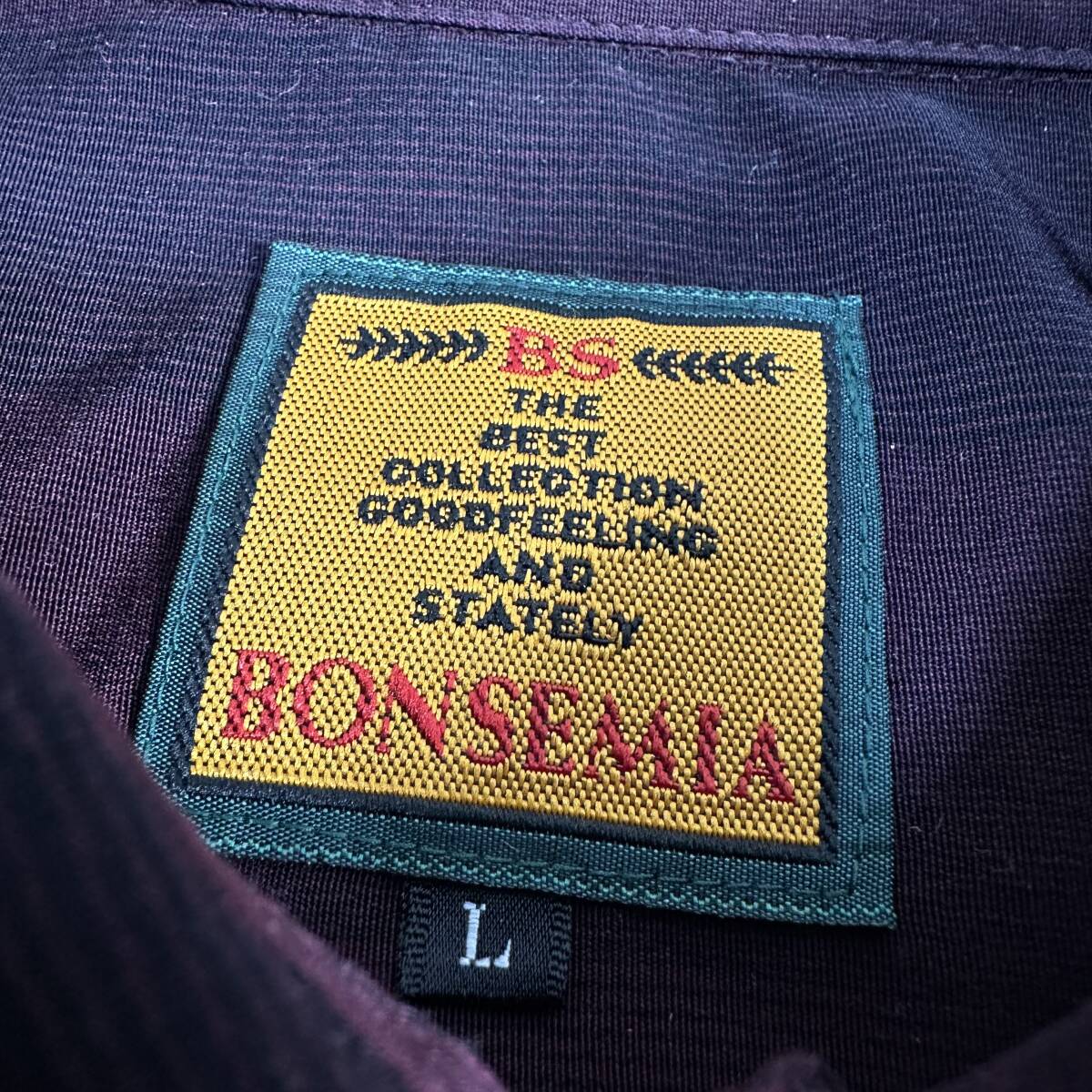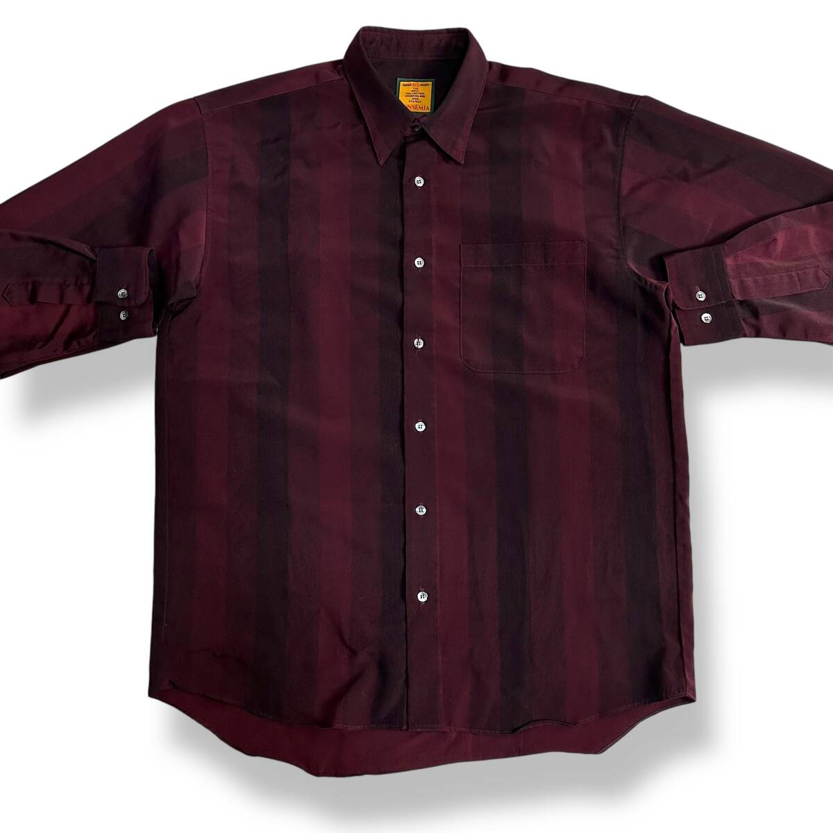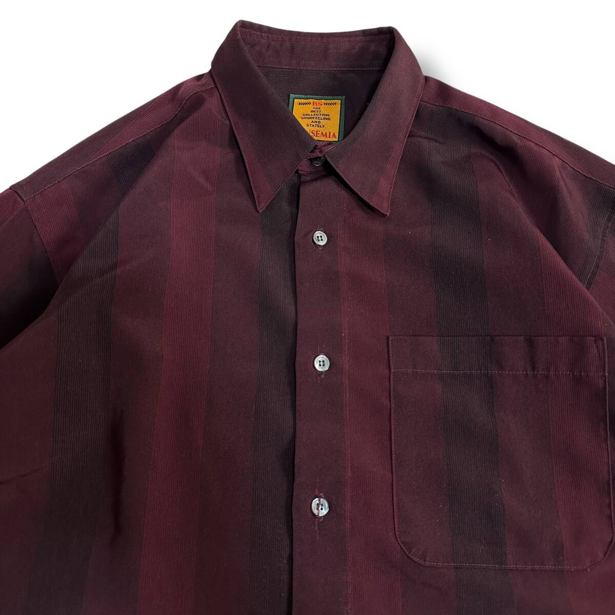 【BONSEMIA】VINTAGE 80s 90s ストライプ レトロビンテージ長袖シャツ オールド 古着 ポリシャツ 昭和レトロ ワインレッド