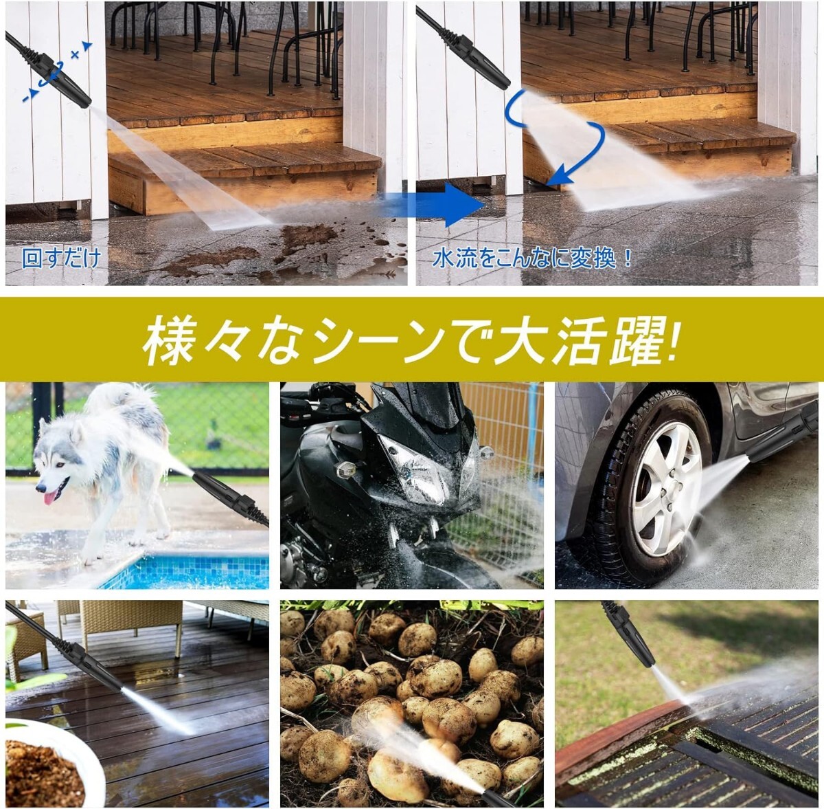 1600Wパワフルモーター:最大排出量は7リットル/分、最大排出圧力:14メガパスカル。周波数は50/60Hzで、日本の東西地域に適用!20フィートの高圧ホースと35フィートの電源コードにより、広範囲での柔軟な使用が可能です。Suyncllプレッシャーウォッシャーは、車、自転車、フェンス、パティオ、歩道、サイディング、庭、庭、屋外家具などの清掃に適しています。あなたの時間とお金を節約します。