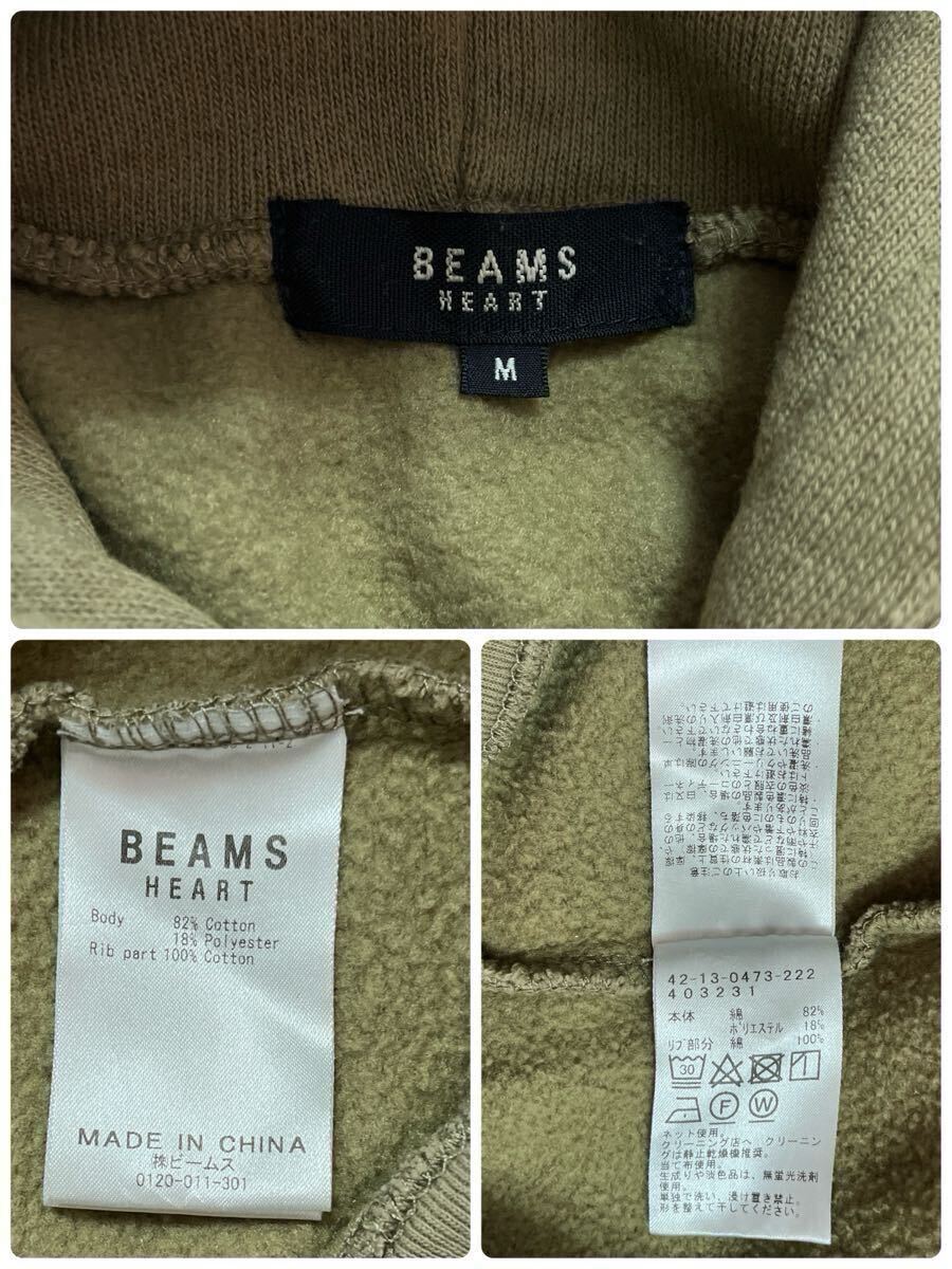 BEAMS HEART 無地 シンプル フーディパーカー カーキ くすみ M●洗濯プレス済●ビームスハート スウェット フーディ トレーナー 古着/185