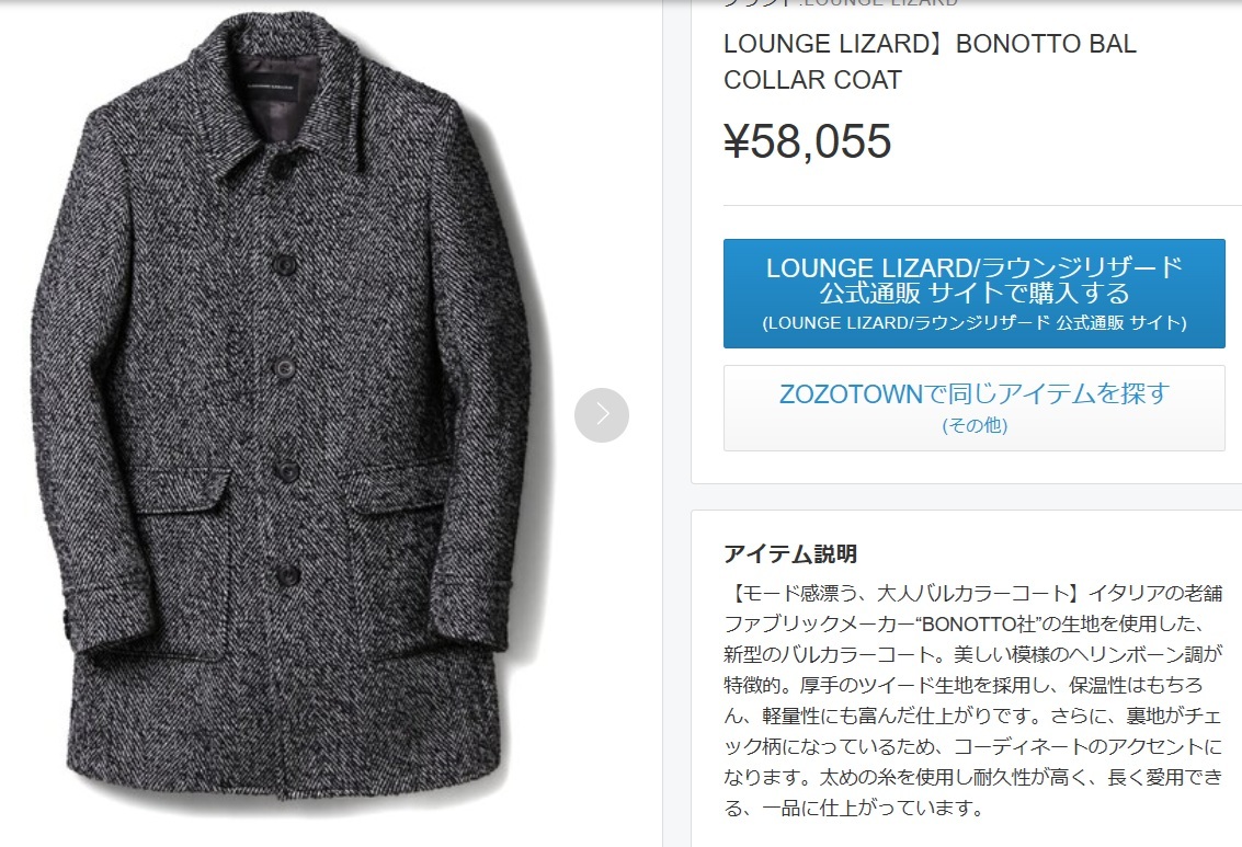 【ラウンジリザード】定価5.8万BONOTTO生地ヘリンボーン柄アルパカ混ウールコート3バルカラー