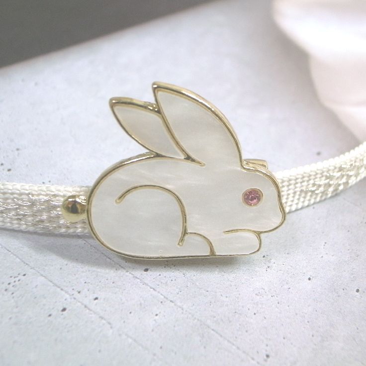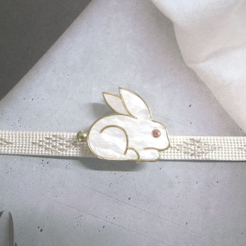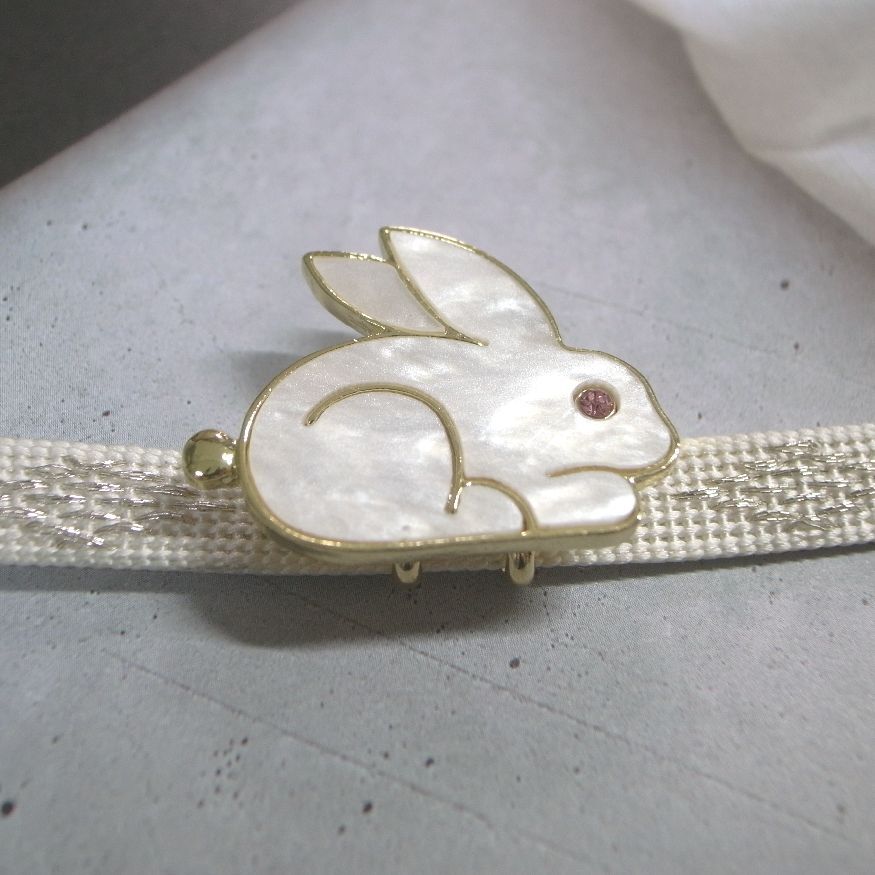 LEAF CLUB ♪ハンドメイド 帯留め 帯留 兔 ウサギ うさぎ シェル風 シェル 貝 動物 兔年 干支 ピンクアイ ゴールドフレーム