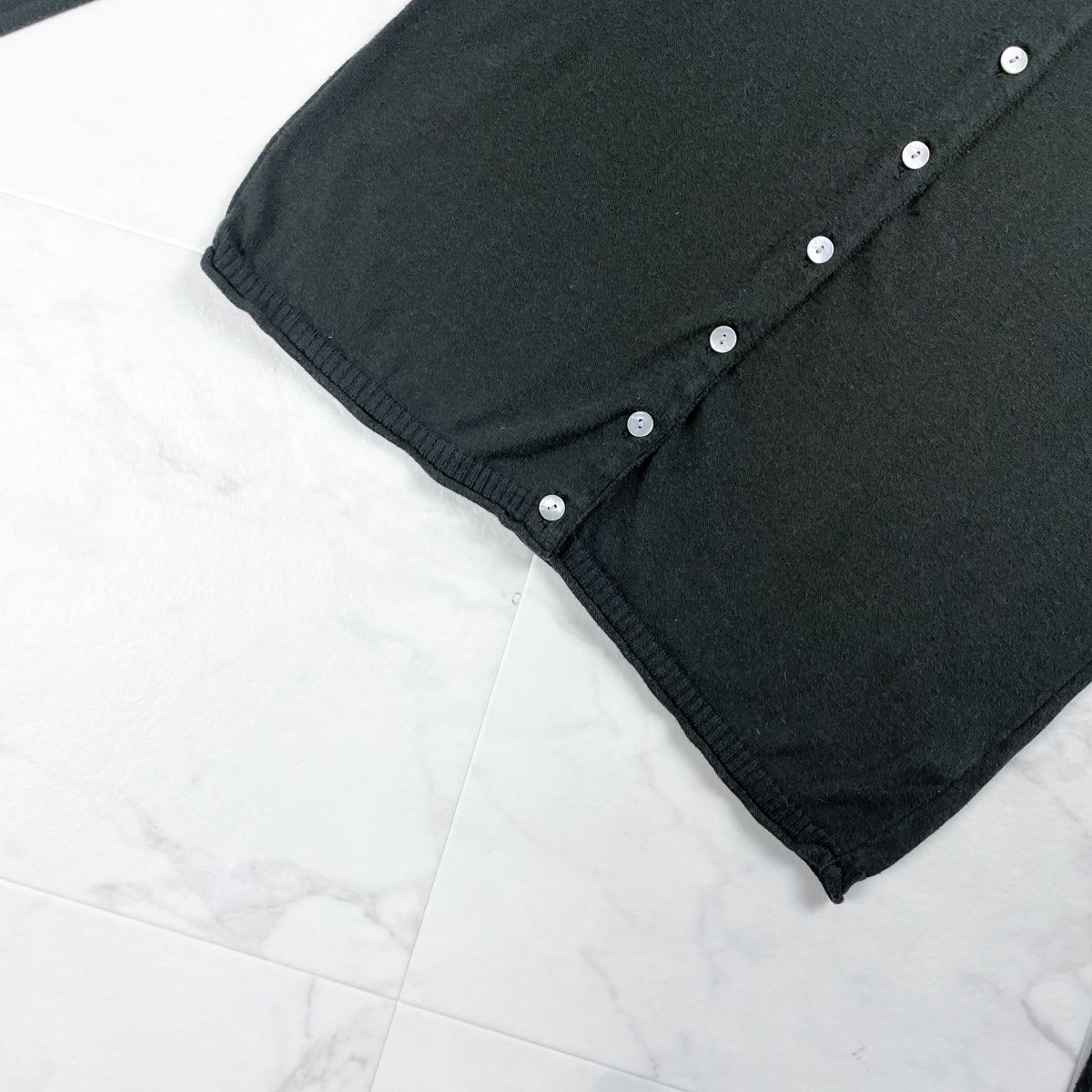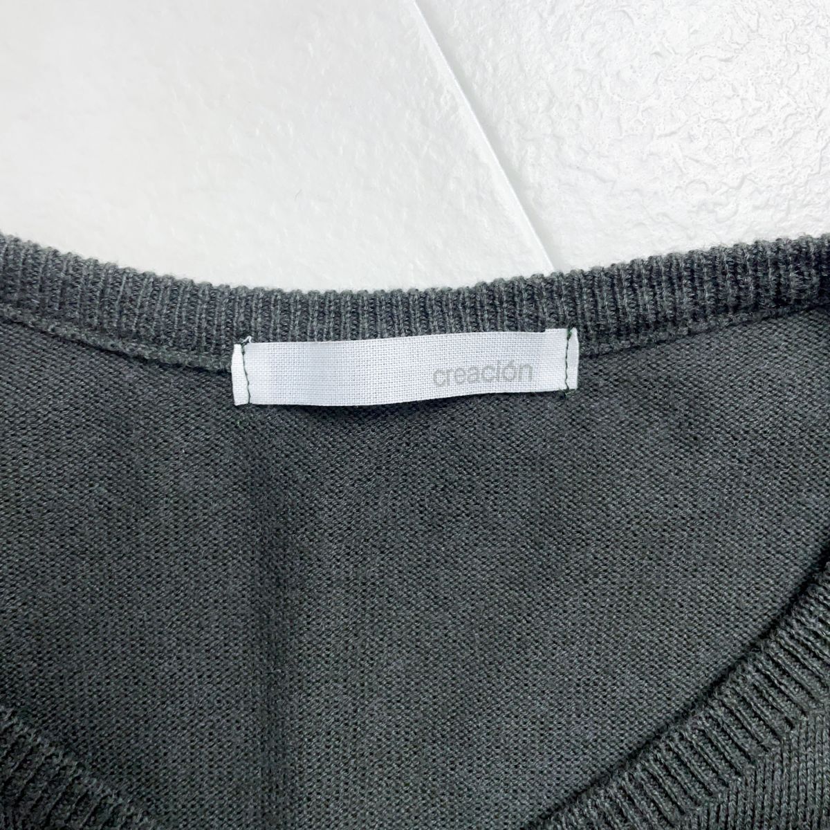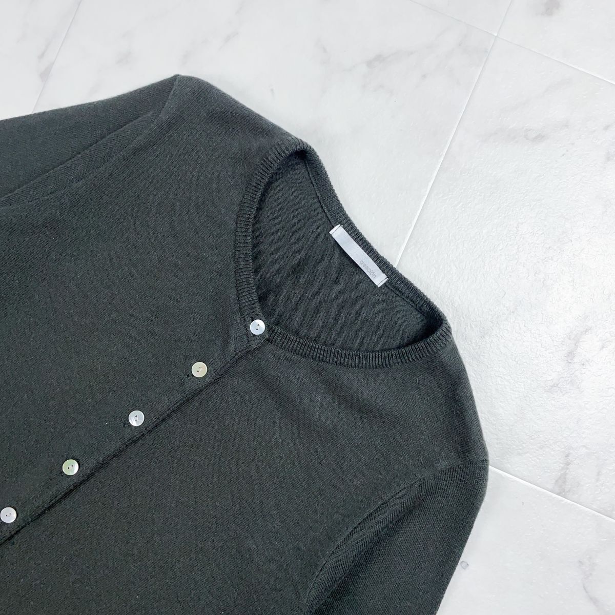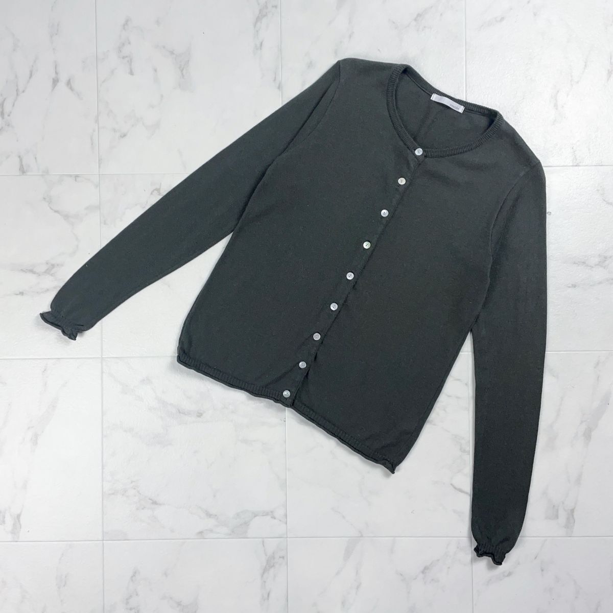 creacion クレアシオン カシミヤ混カーディガン 貝ボタン 長袖 リブ付 レディース カーキ サイズ1*ZC87