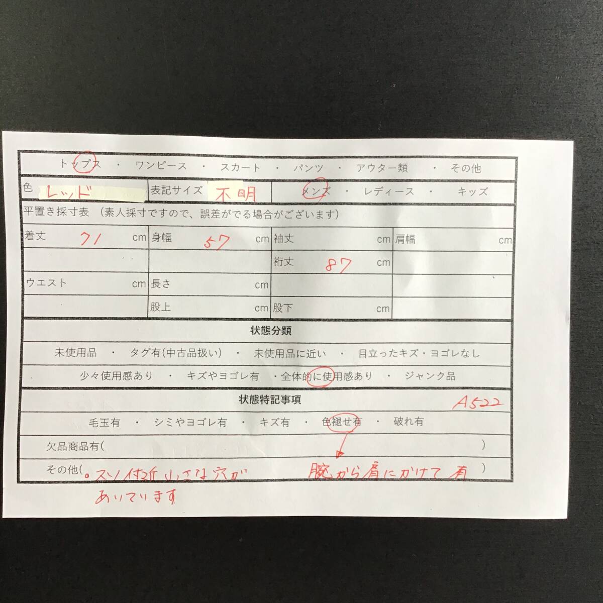 ・慎重に検品を行っておりますが、見落としがある場合がございます。