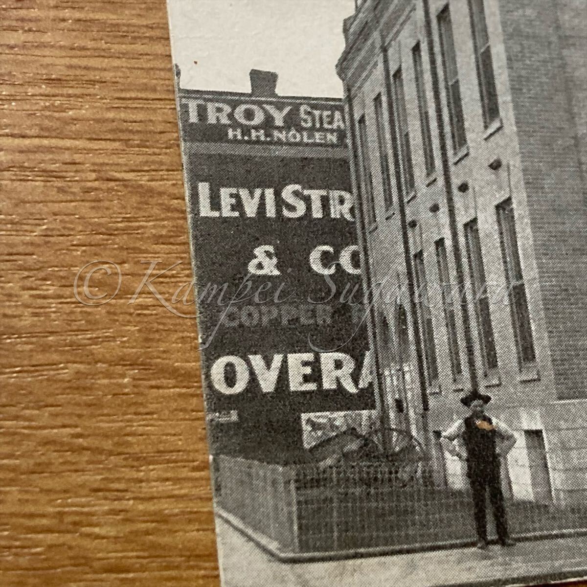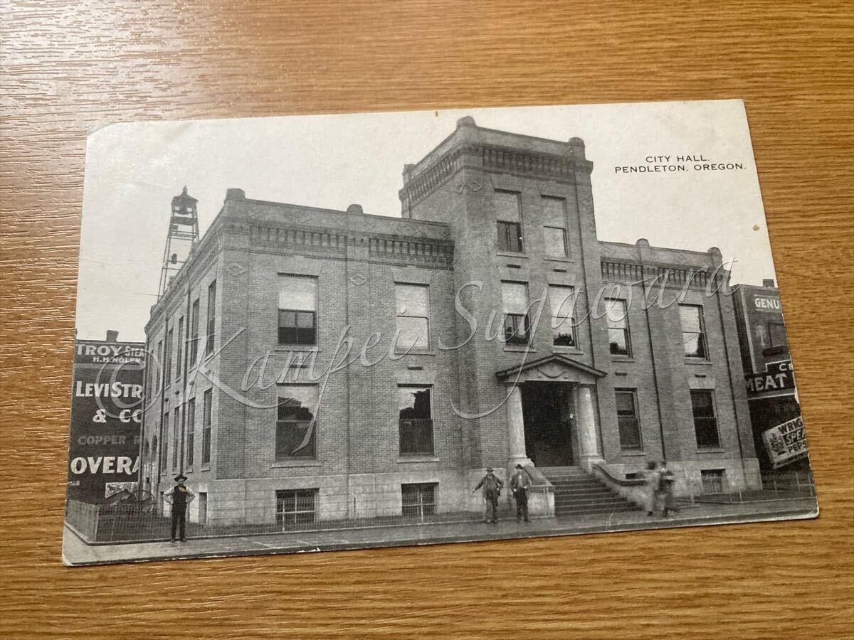 撮影日の記載はありませんが旧市役所が1908年に完成している点、リーバイスがサンフランシスコ大震災(1906年4月18日)後から近隣州の取扱店に広告サービスを実施し始める事から推測すると「1908年〜1910年代前半」に撮影された物で間違いないと思います。110年以上前のオリジナルです。