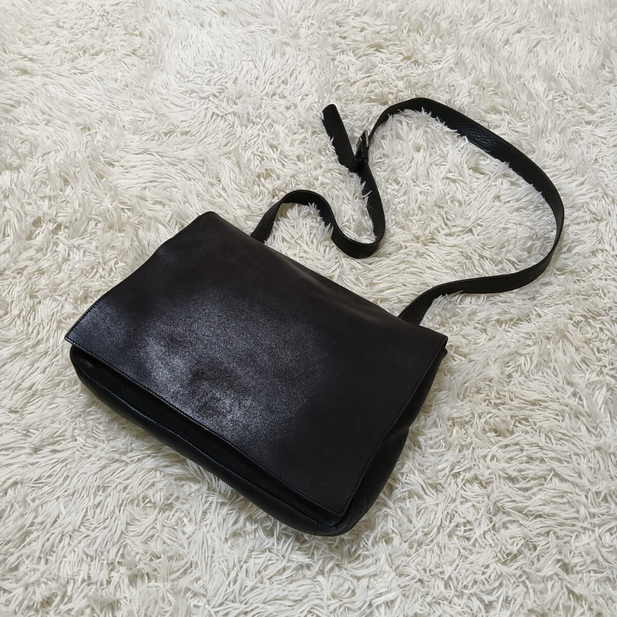 ☆DAKOTA ダコタ ショルダーバッグ 刻印ブランドロゴ ブラック レザー フラップ シンプル アーカイブ 肩掛け 斜め掛け 日本製 かぶせ蓋 鞄 古着 USED