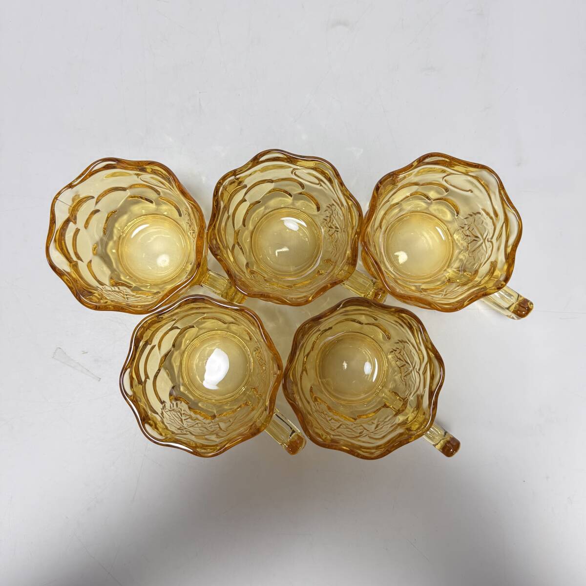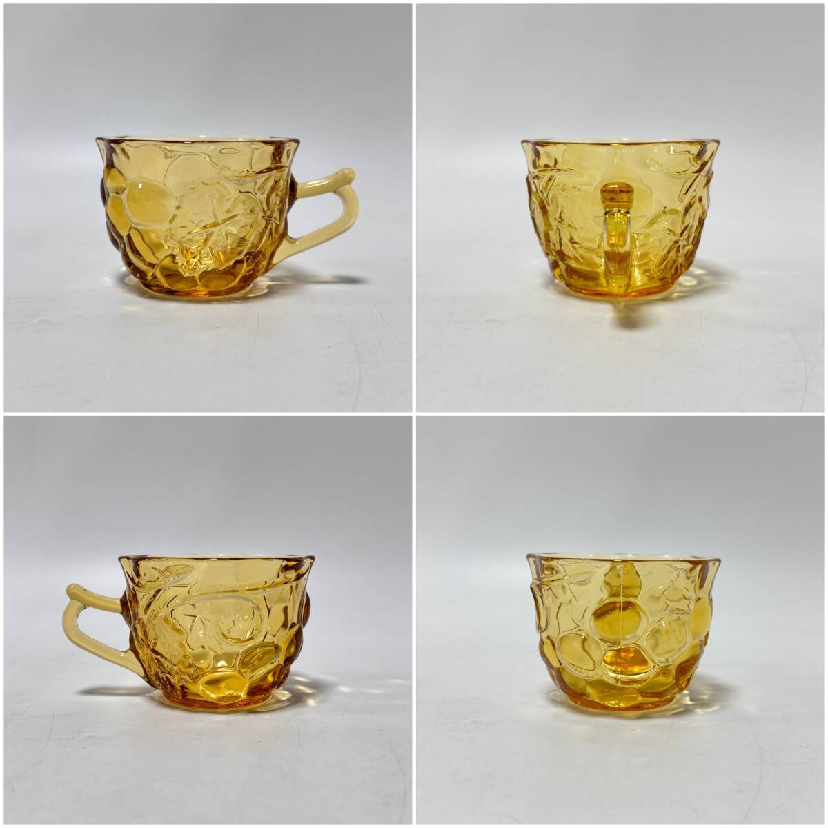 【62277Q】SOGA GLASS 曽我ガラス グレープライン アンバー カップ&ソーサー5客 キャニスター1客 昭和レトロ 経年保管品 現状品