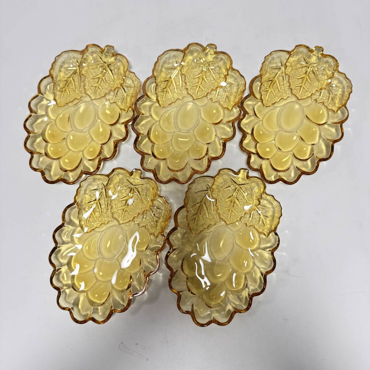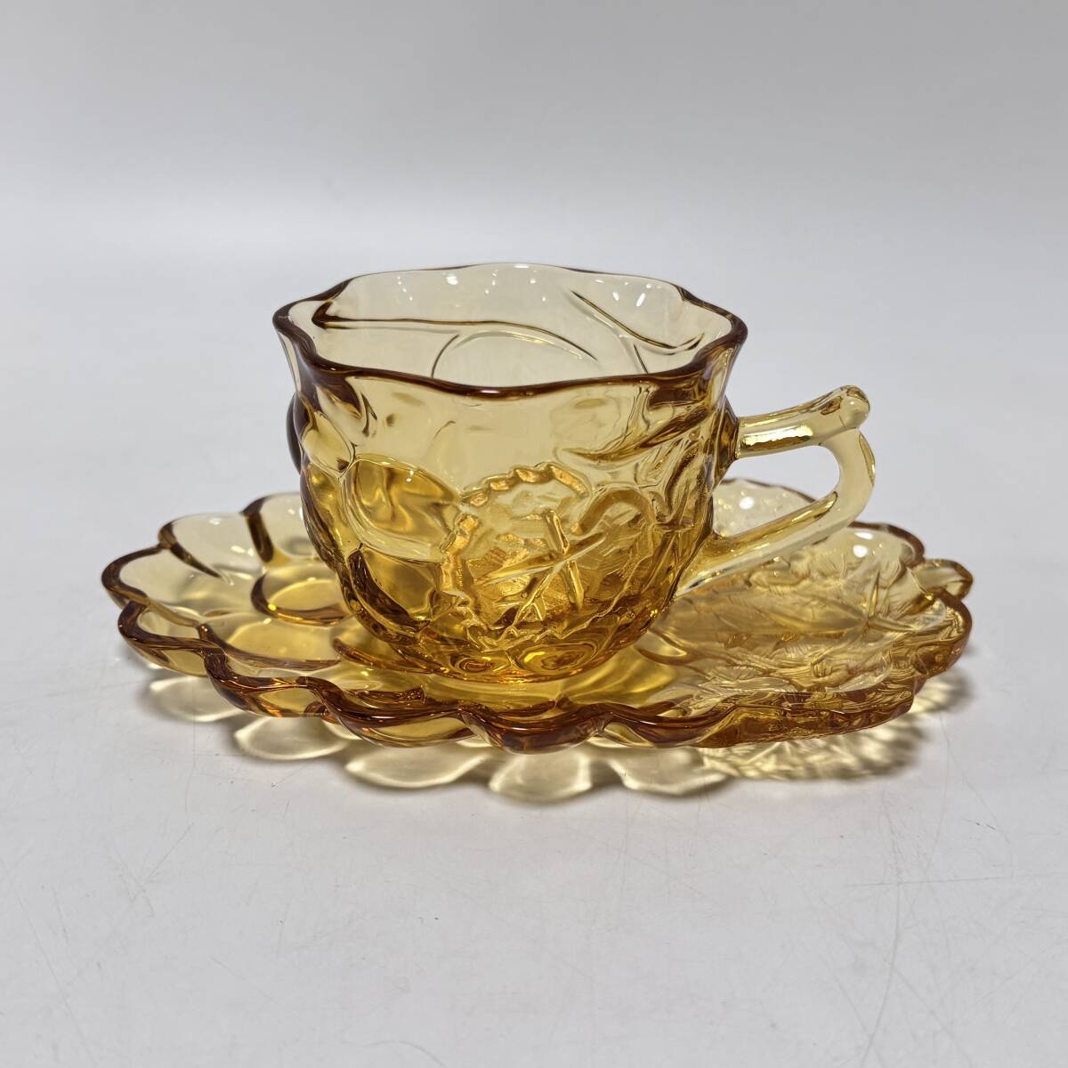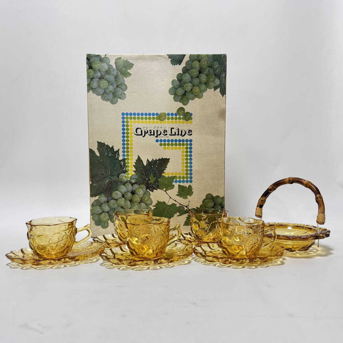 SOGA GLASS 曽我ガラス グレープライン グレープティータイムセット アンバー カップ&ソーサー5客 キャニスター(根竹弦付)1客 昭和レトロ 当時物 経年保管品 現状品の出品です。