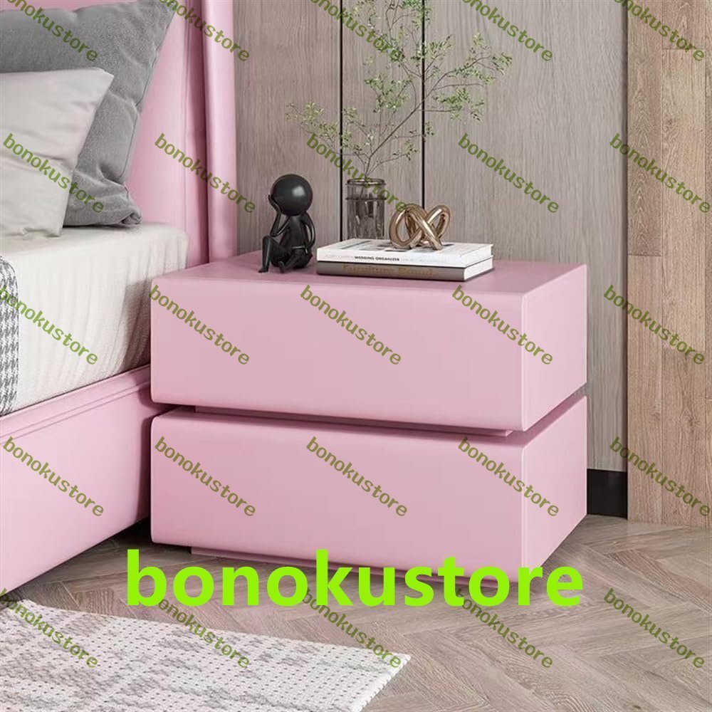 マイクロファイバーレザーナイトスタンド、無垢材フレーム付き、寝室、リビングルームに最適な2つの収納引き出し付きモダンなベッドサイドテーブル。(Pink 17.7*15.7*17.7in)