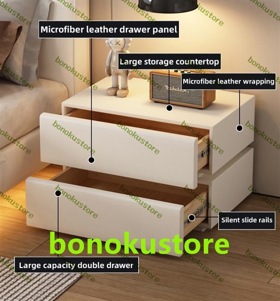 スタイルと機能性を完璧に融合するように設計されたこのモダンなナイトスタンドは、どんな寝室にも欠かせないものです。時代を超越したデザインは、すっきりとしたラインとクラシックなシルエットが特徴で、モダンなインテリアと伝統的なインテリアの両方を簡単に引き立てます。丸みを帯びた角は美しさを高めるだけでなく、寝室を偶発的な衝撃や傷から守ります。このベッドサイドテーブルは耐久性に優れた高品質の無垢材で作られています。頑丈な構造により、長期間揺れることなく安定した状態を維持できます。滑らかな表面は素敵なタッチを加え、寝室のインテリアを引き立てる洗練された家具です。このナイトスタンドの 2 つの広々とした引き出しと広いカウンタートップにより、収納が簡単になります。引き出しは金属レール上でスムーズに動くので開閉が簡単で、本のリモコンや身の回り品などのベッドサイドの必需品をきれいに収納するのに十分なスペースを提供します。必要なものはすべて手の届く範囲にありながら、見えないところに隠れています。マイクロファイバーレザーで包まれた表面のおかげで、ナイトスタンドの美しい外観を維持するのは簡単です。キャビネットは滑らかな仕上げなので、お手入れが簡単です。湿らせた布でさっと拭くだけで、新品同様の状態を保つことができます。仕様名前: ベッドサイドテーブル組み立て: いいえパッケージに含まれるもの:1 *ベッドサイドテーブル多用途に使えるこのスタイリッシュなナイトスタンドは、家全体でさまざまな機能を果たします。ベッドサイドテーブル、コーヒーテーブル、ソファサイドテーブルとしても、デスクとしても、そのデザインと機能性により、寝室、リビングルーム、オフィス、書斎など、あらゆる部屋に完璧にフィットします。組み立てツールと部品を使用すると、この小さなナイトスタンドはすぐに完成します。