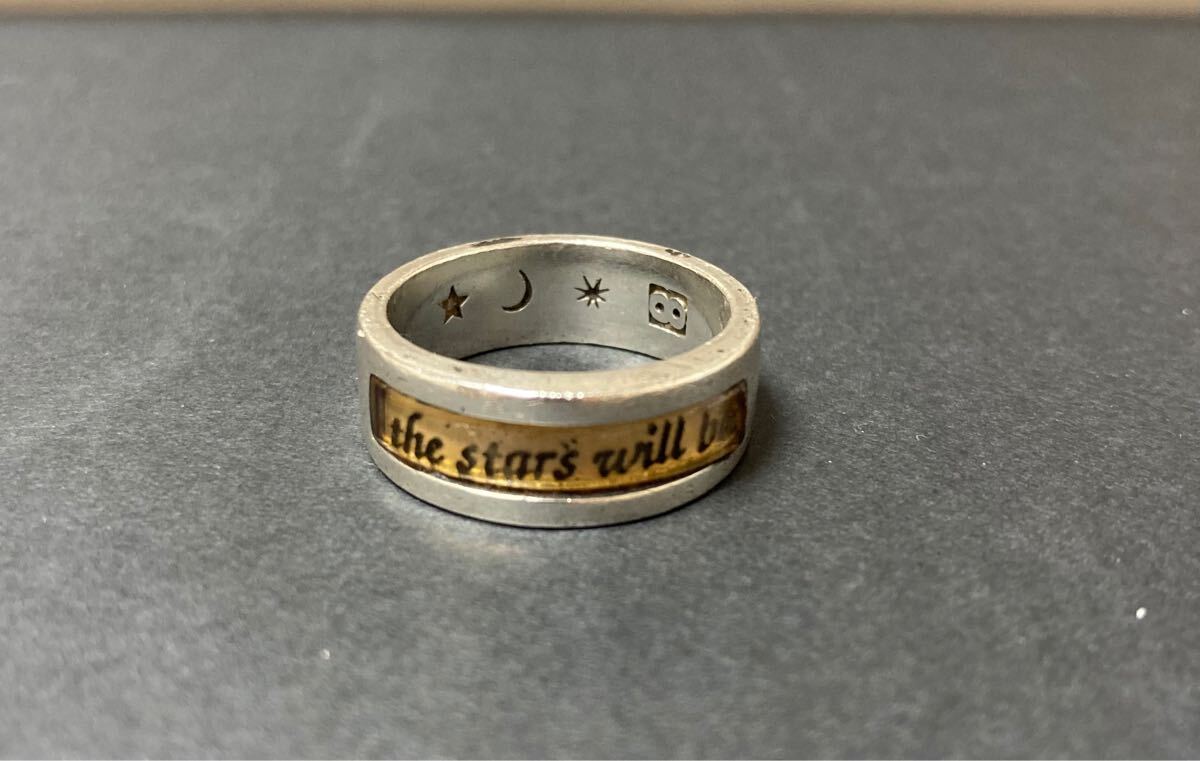 シルバー925 メッセージリング「the stars will be」星・月・太陽モチーフ 指輪 サイズ約18.5号  重さ約7.8g