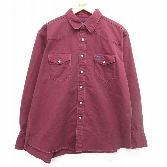 【商品名】 XL★古着 ラングラー 長袖 ウエスタン シャツ メンズ 大きいサイズ コットン エンジ