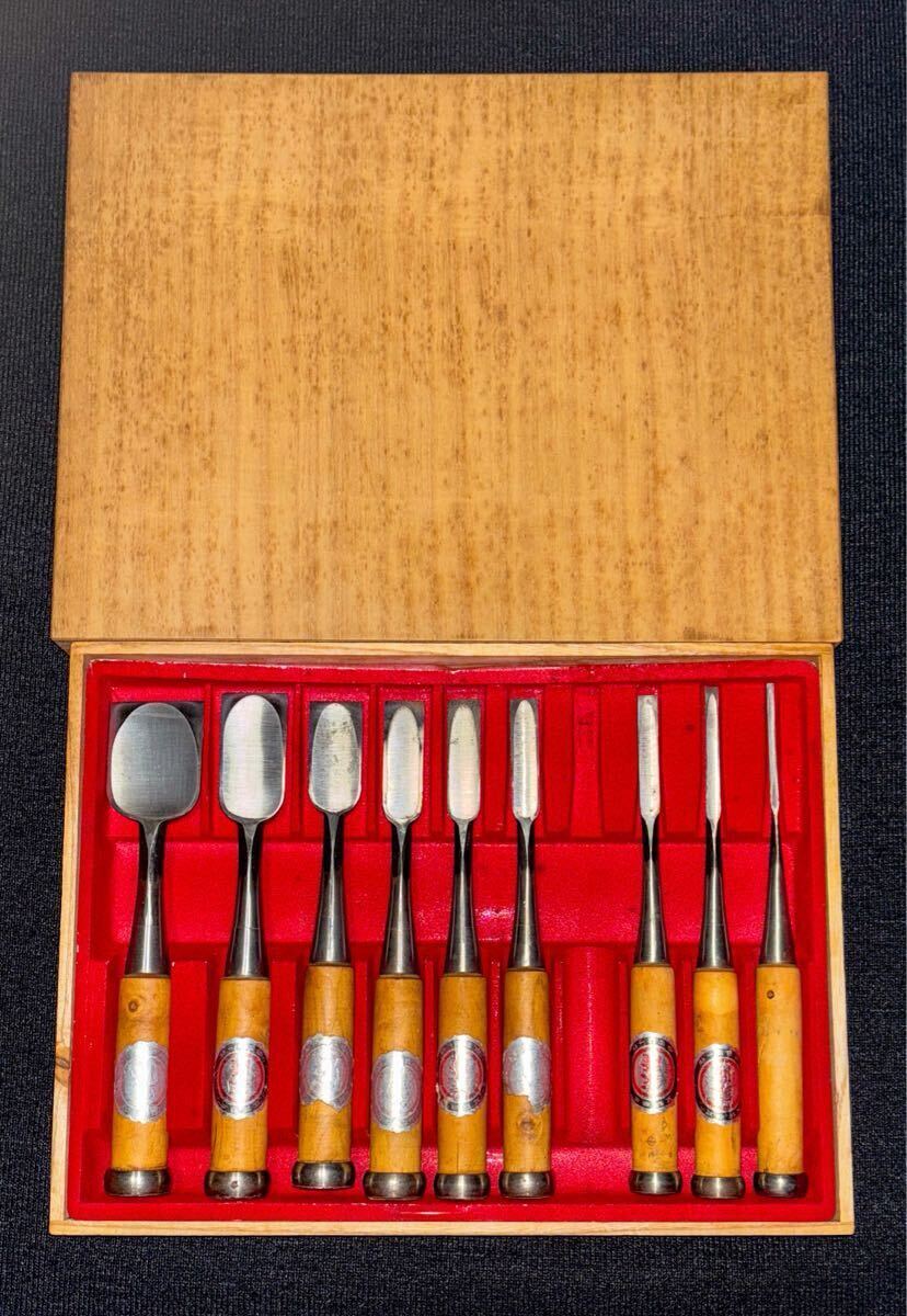 ● 【家隆鑿】叩き鑿 追入鑿 刃巾 1寸4分・1寸・8・6・5・4・3・2・1分 のみ ノミ 9点SET ★希少・OLD・現状品の出品となります。