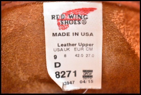 【9D 良品 15年】レッドウィング 8271 エンジニア 赤茶 オロラセット スチールトゥ プルオン ブーツ redwing HOPESMORE