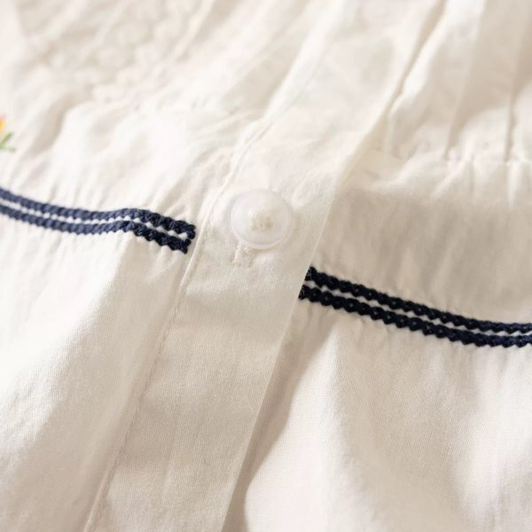 sg ワイシャツ トップス チュニック 大人可愛 フリーサイズ ナチュラル 刺花柄4 綿100%