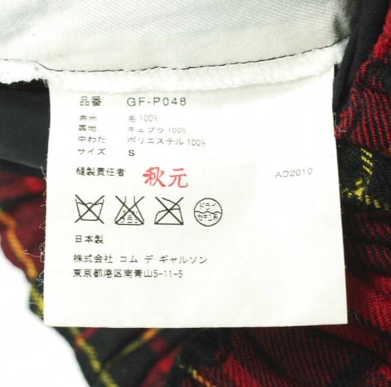 COMME des GARCONS コムデギャルソン 日本製 10AW タータンチェック ウールサルエルショーツ GF-P048 S RED イージー ペンギン パンツ 中綿