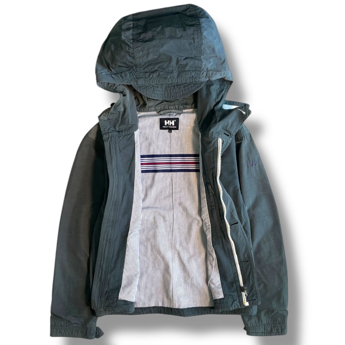 国内正規品★ HELLY HANSEN ヘリーハンセン レディース ナイロン ジャケット ジップ 6釦 緑系 Sサイズ アウター フード付き 春物 トップス