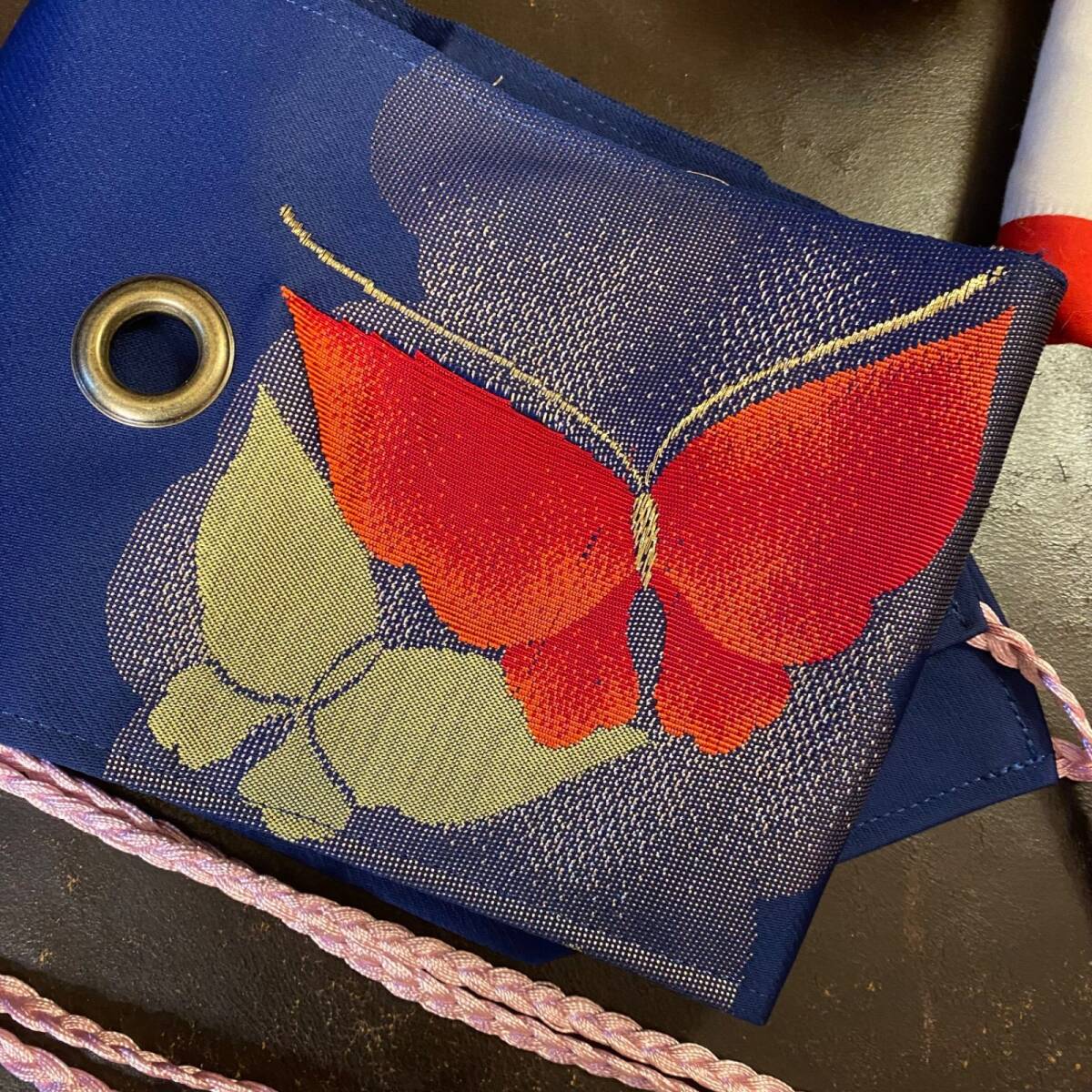 帯には、目を引く 紅の蝶が舞うデザイン を採用。