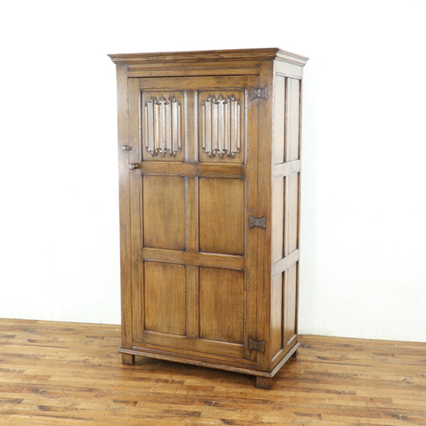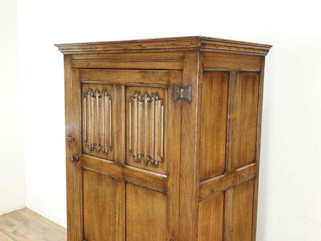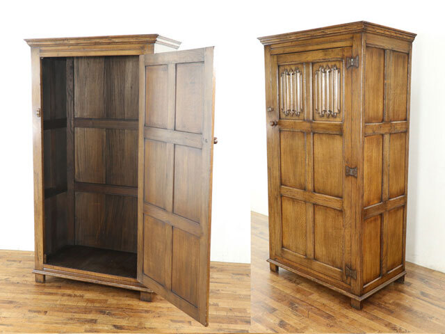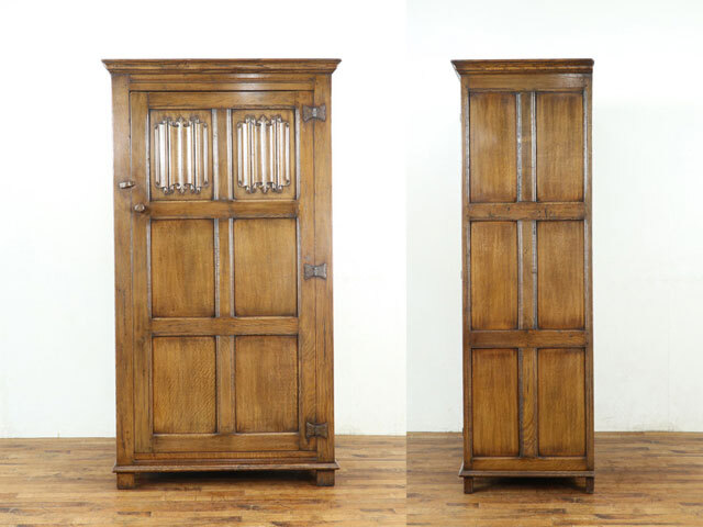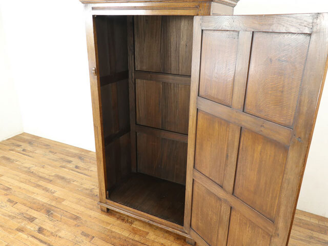 幅99×奥60×高178.5cm ワードローブ 1枚扉 奥行きのあるサイズ リネンフォールド 衣類収納 かっこいい雰囲気 イギリス家具 59656