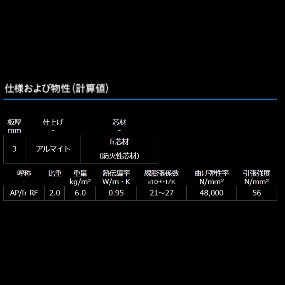 防火性芯材をアルミ板で挟み、片側表面をアルマイト鏡面加工してあります。