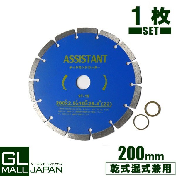 【クリックポスト】送料無料 1枚入り ダイヤモンドカッター DC200 直径200mm 穴径25.4mm [乾式・湿式兼用] 調整リング付き