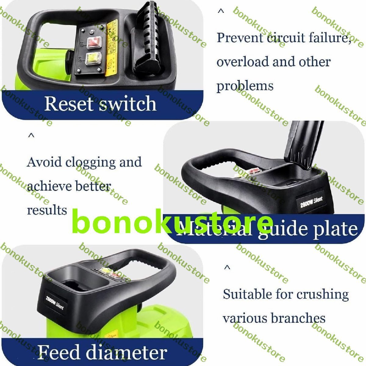 効率的:ガーデングラインダーには強力な2800W銅線モーターが装備されており、ステンレス鋼のマンガン鋼ブレードと組み合わせて、グラインダーは高い切断効率を提供でき、電動ナイフグラインダーは直径1.77インチまでの枝や低木を簡単に粉砕できます。