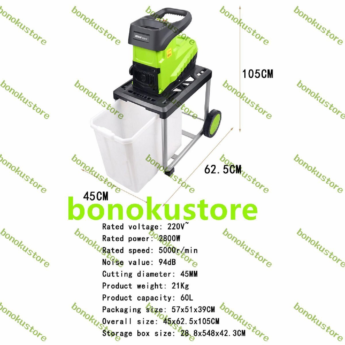 2800W電動ブランチシュレッダー 5000r/minポータブル多機能リーフシュレッダー 60Lコレクションボックス付き 45mm直接切断