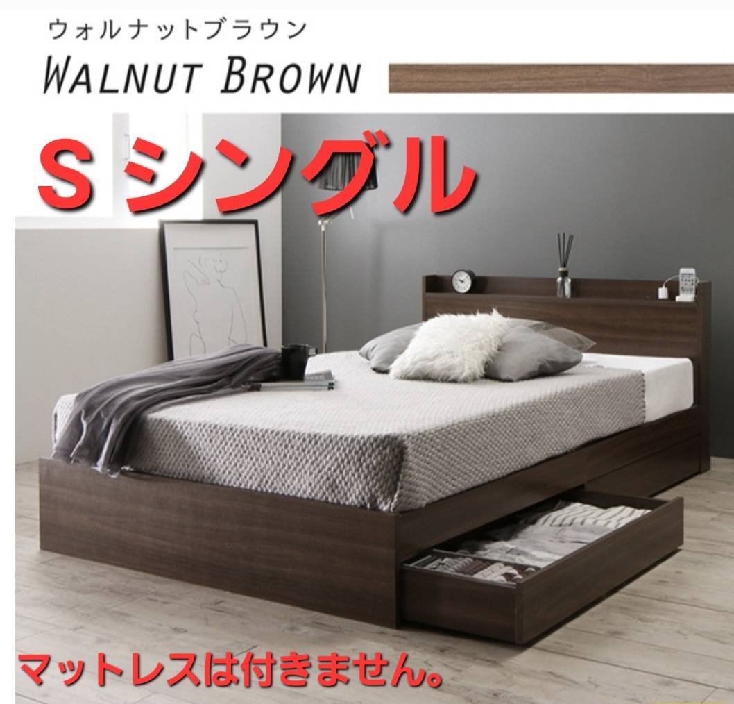 決算前セール【アウトレット品】フレームのみ シングルベッド・2杯収納コンセント付・ウォルナットブラウン③