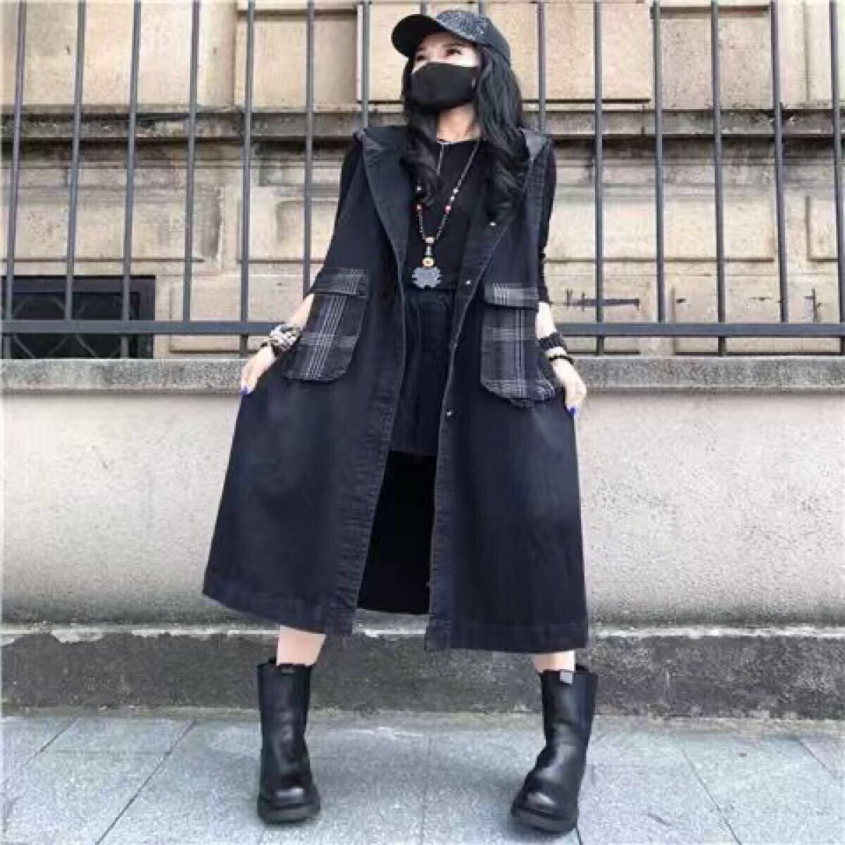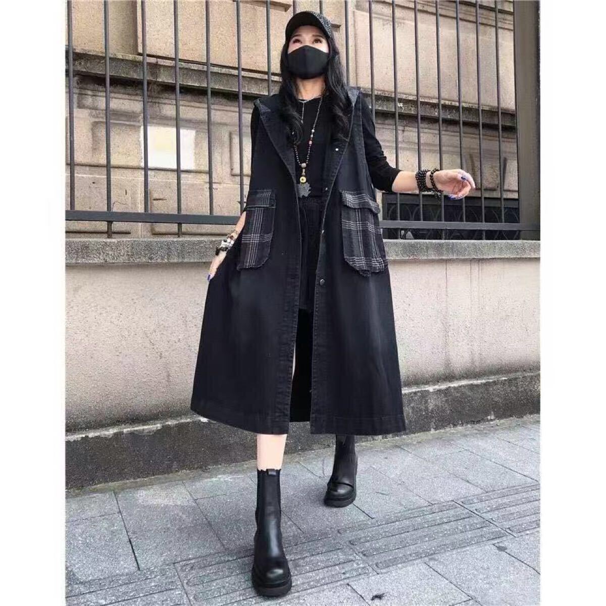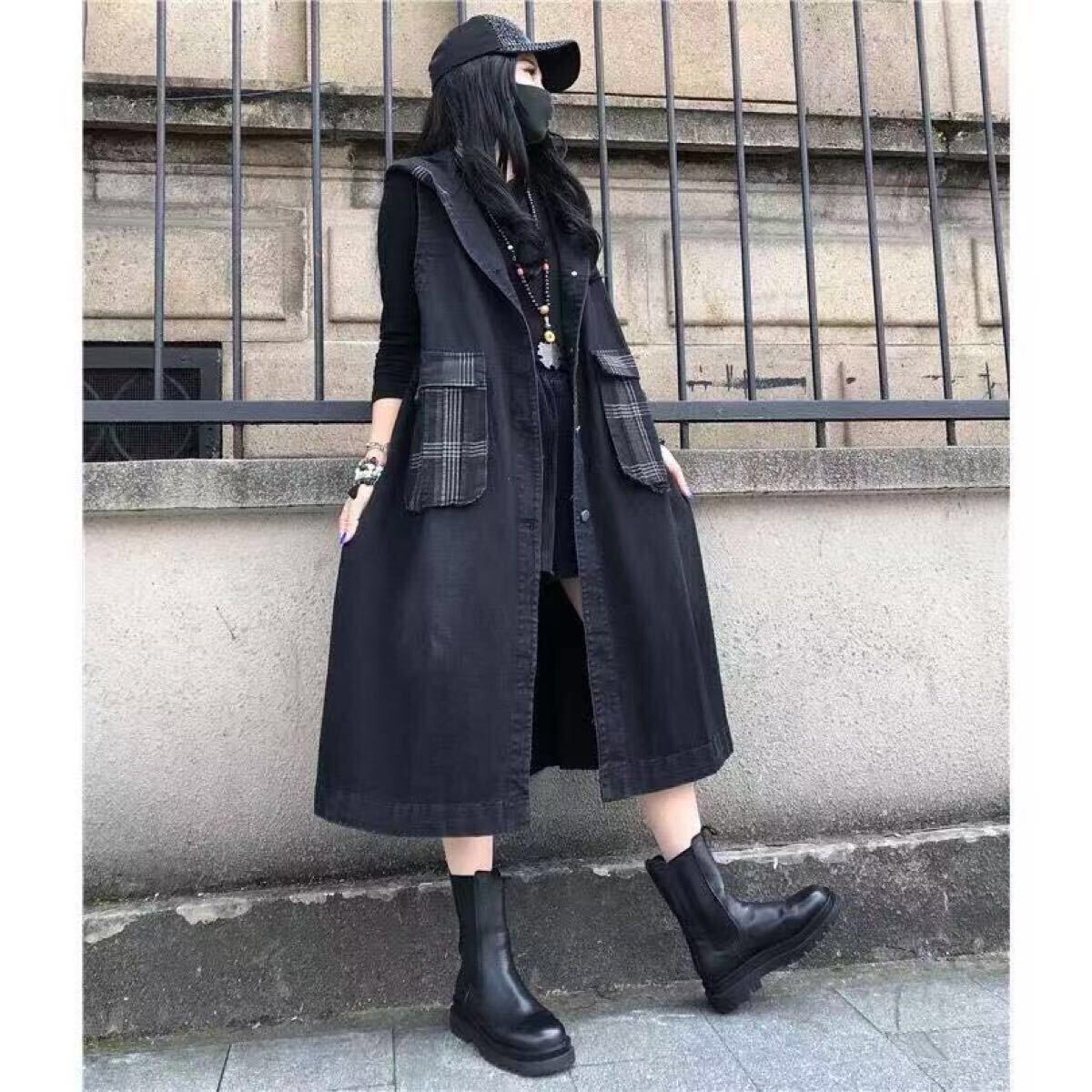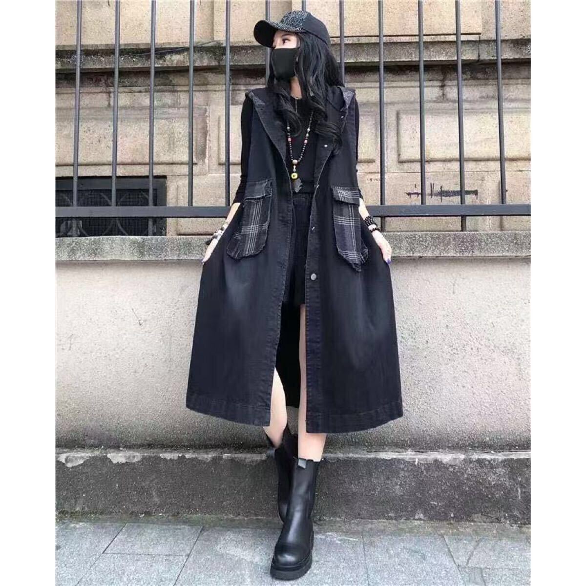 デニムベスト ロングベスト レディース ベスト マキシベスト デニム ロング丈 春 秋 袖なし フード付き 前開き ポケット付き ベストアウター ノースリーブ おしゃれベスト デニムベスト ベストジャケット ベストコート トップス ゆったり 体型カバー LCGA008(S-4XL)