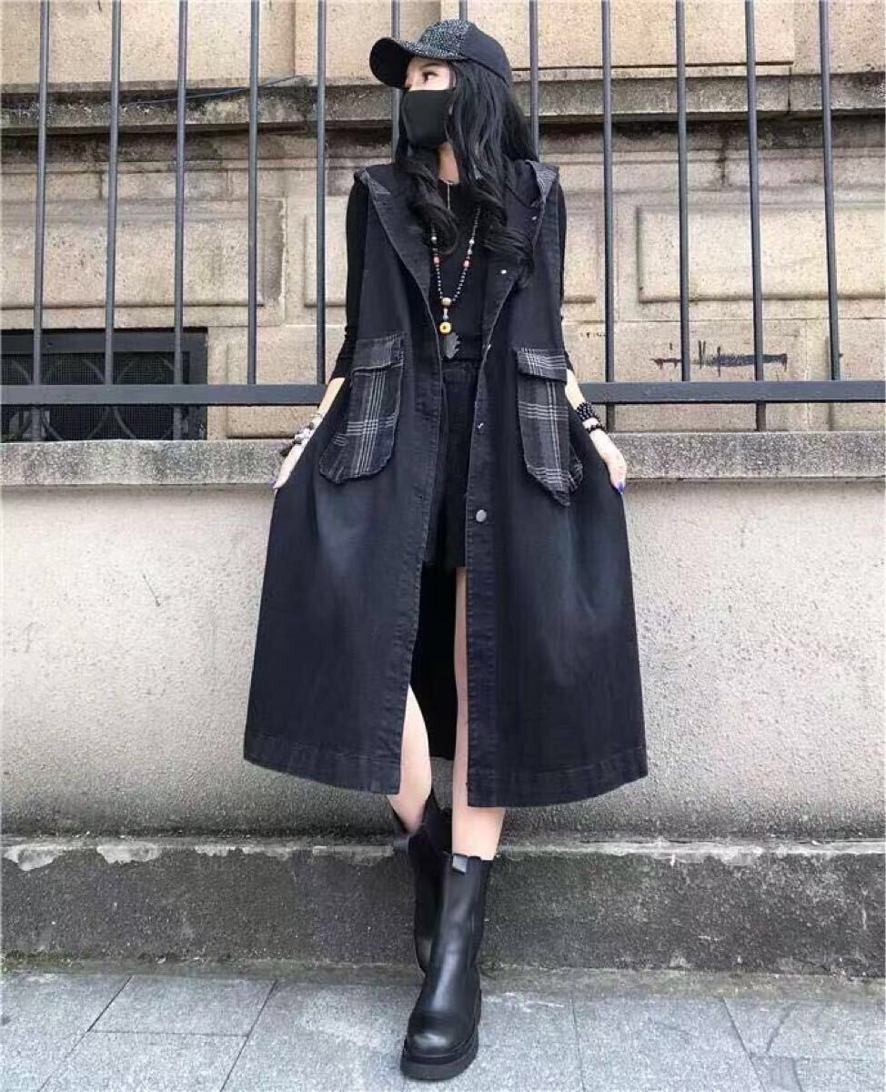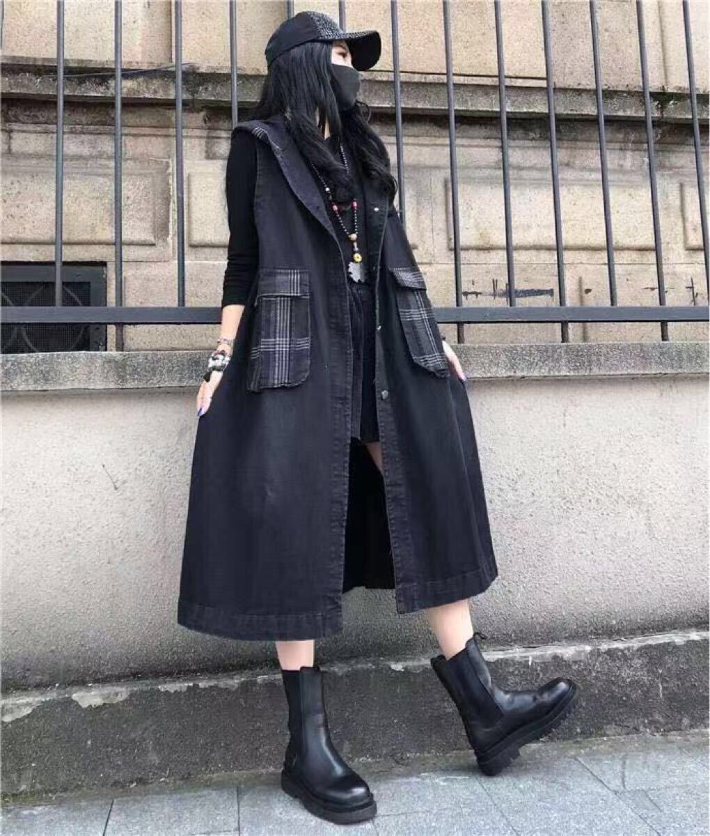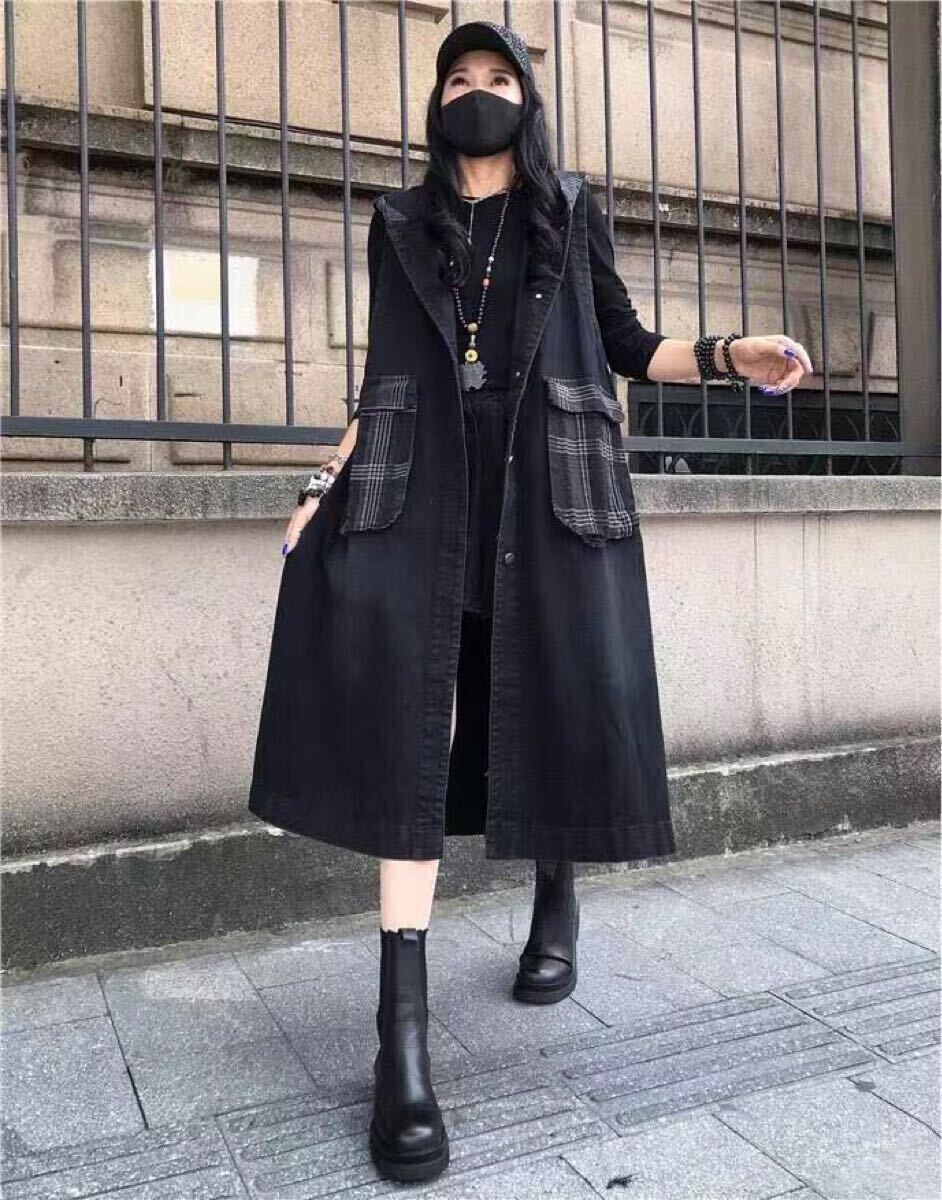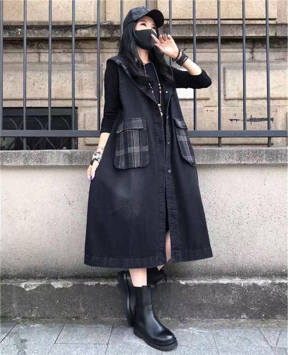 デニムベスト ロングベスト レディース ベスト マキシベスト デニム ロング丈 春 秋 袖なし フード付き 前開き ポケット付き ベストアウター ノースリーブ おしゃれベスト デニムベスト ベストジャケット ベストコート トップス ゆったり 体型カバー LCGA008(S-4XL)