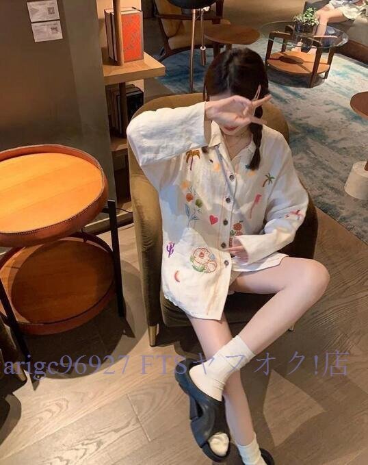 B3158☆新品カジュアル 前開け カーディガン 豪華刺花柄 トップス チュニック フリーサイズ 大人可愛 ナチュラル 麻100%リネン サラサラ