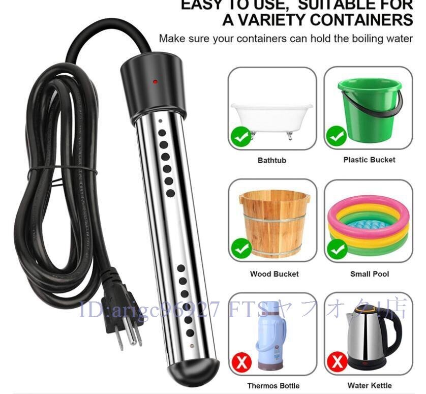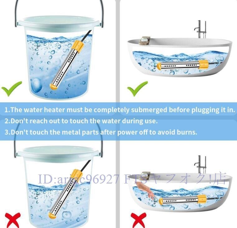 B3398投げ込みヒータープールヒーター1500W ポータブルバケットヒーター液浸ヒーター浸水給湯器浸漬湯沸かし器自動電源オフ 浴槽用 家庭用