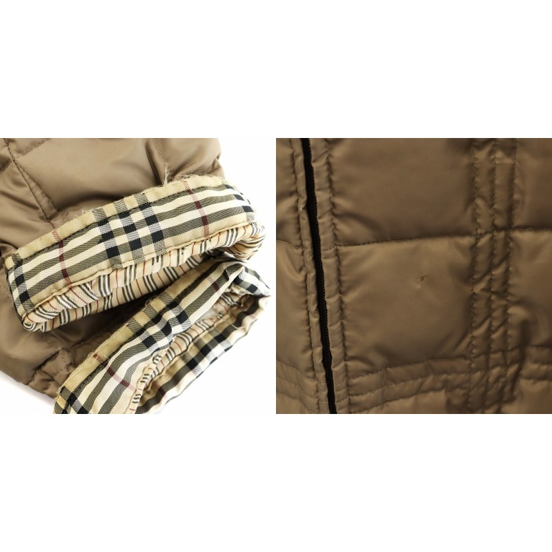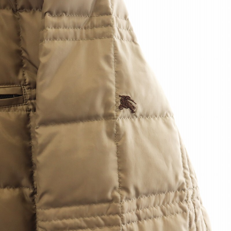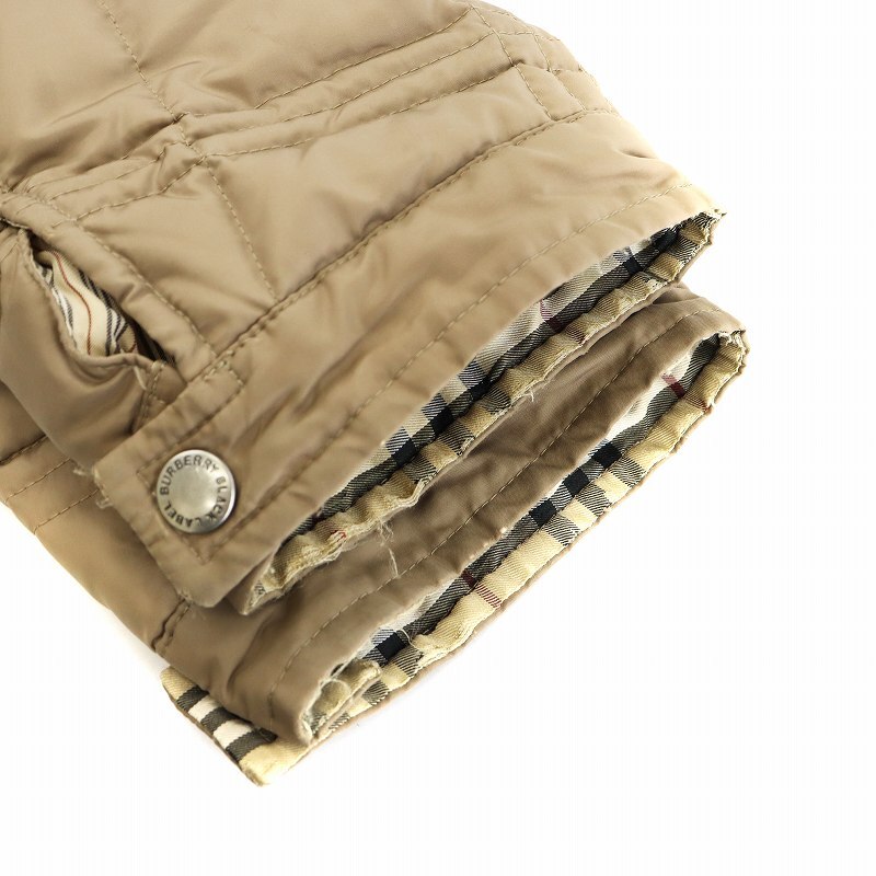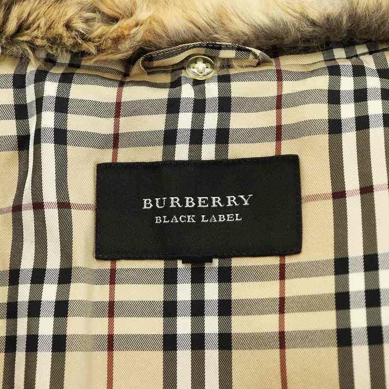 バーバリーブラックレーベル ダウンジャケット キルティング ラビットファー 裏地チェック アウター M ベージュ ■GY12
