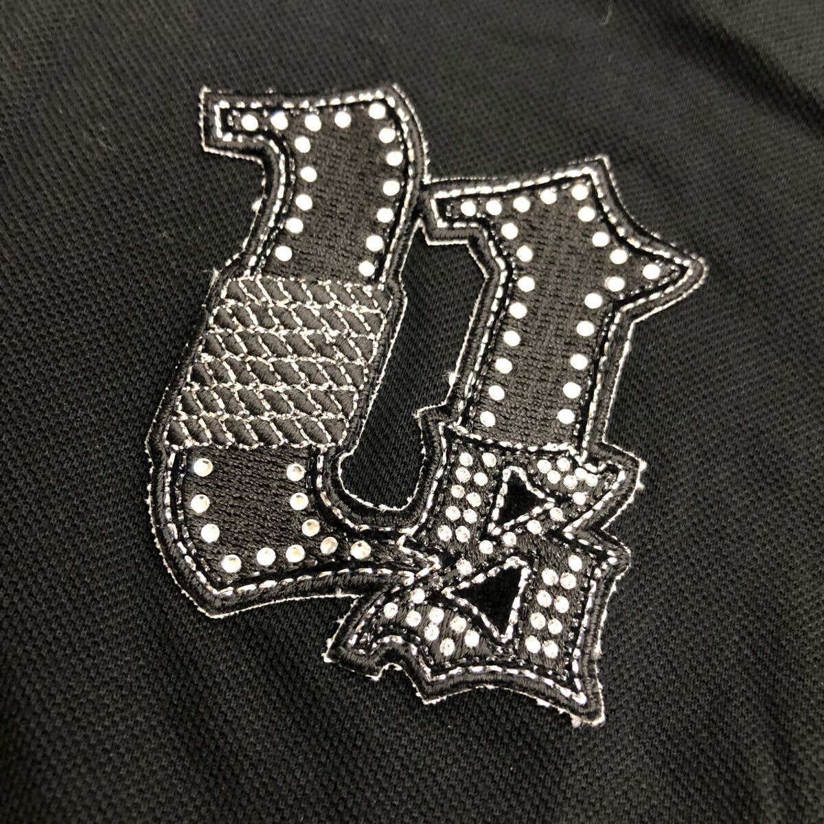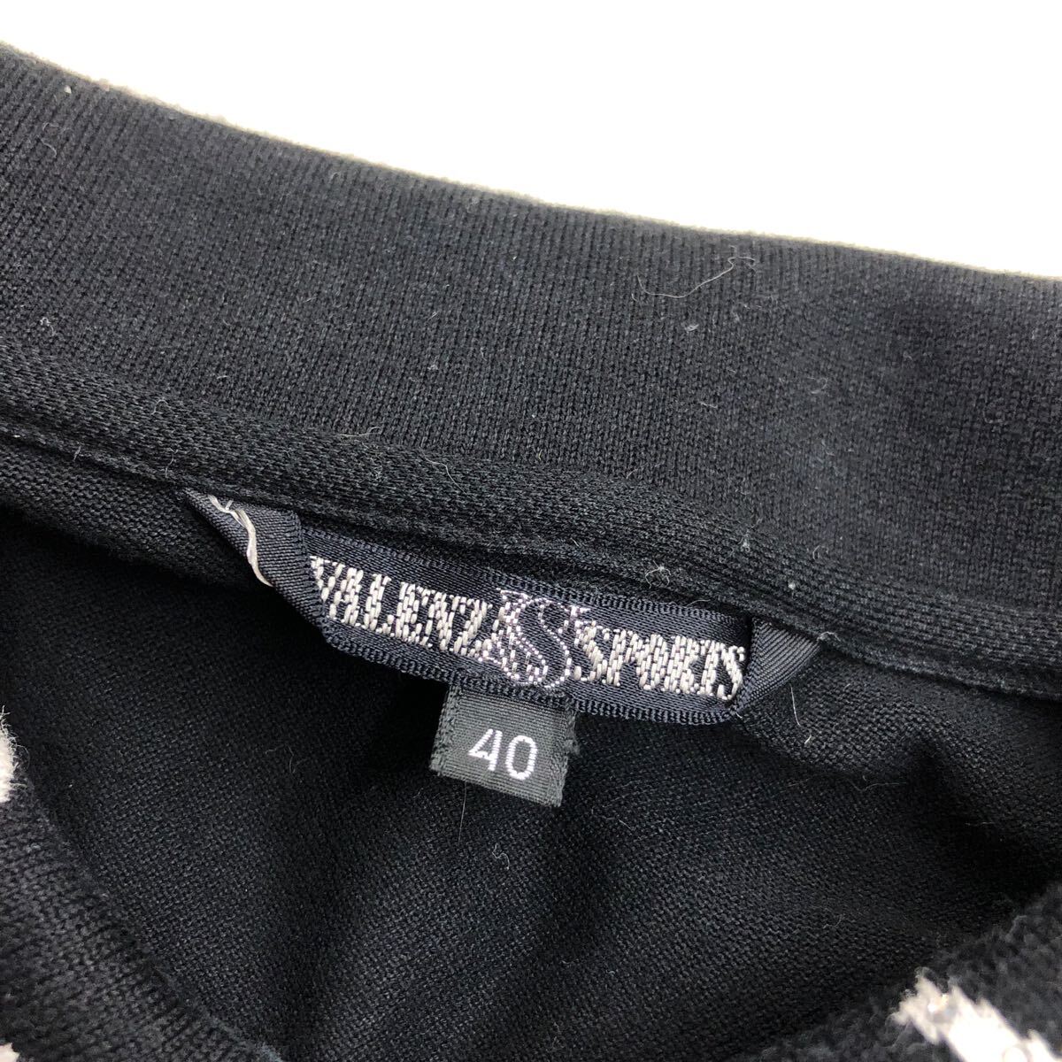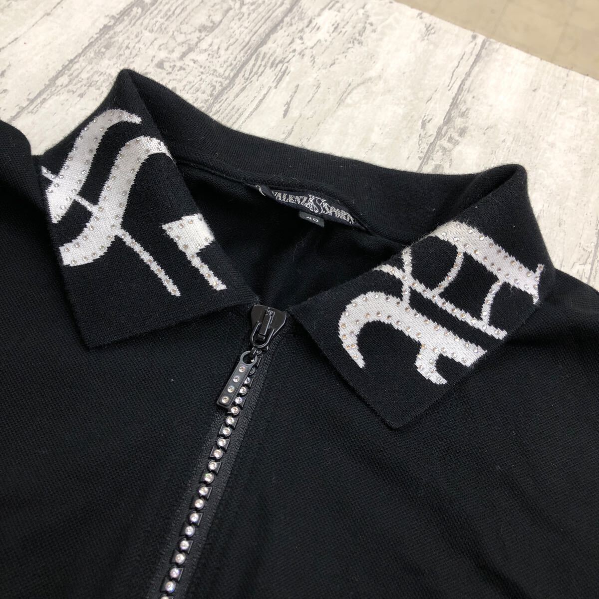 valenza po SPORTS バレンザポー 半袖ポロシャツ サイズ40 ハーフジップ ビジュー ワッペン コットン 黒 レディース YF158