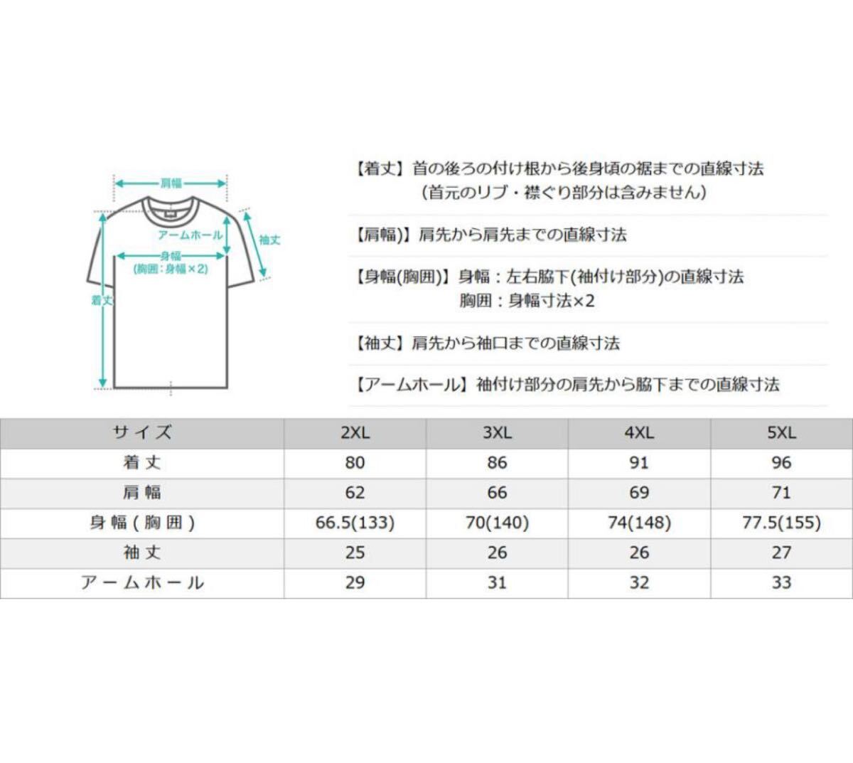 お手持ちのTシャツと記載の大きさ(cm)を比べてご自身で判断ください。