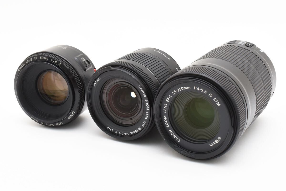 CANON EOS Kiss X10i標準&望遠&単焦点トリプルレンズセット/EF18-55mm F:4-5.6 IS STM /EF 55-250mm F4-5.6 IS STM/EF 50mm F1.8II