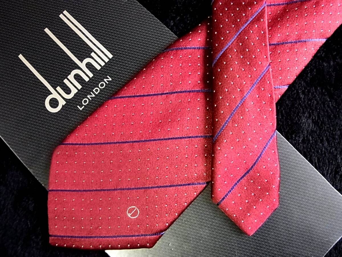 ■E5519N●良品●【dunhill】ダンヒル【ロゴ ストライプ】 ネクタイ★