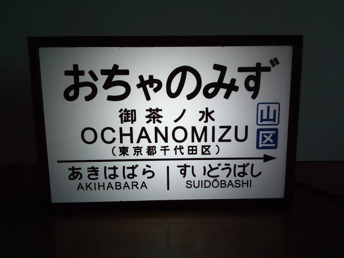【他駅オーダー無料】鉄道 電車 汽車 駅名標 国鉄 昭和 レトロ 御茶ノ水駅 ミニチュア 看板 玩具 置物 雑貨 LED ライトBOXミニ 電飾看板