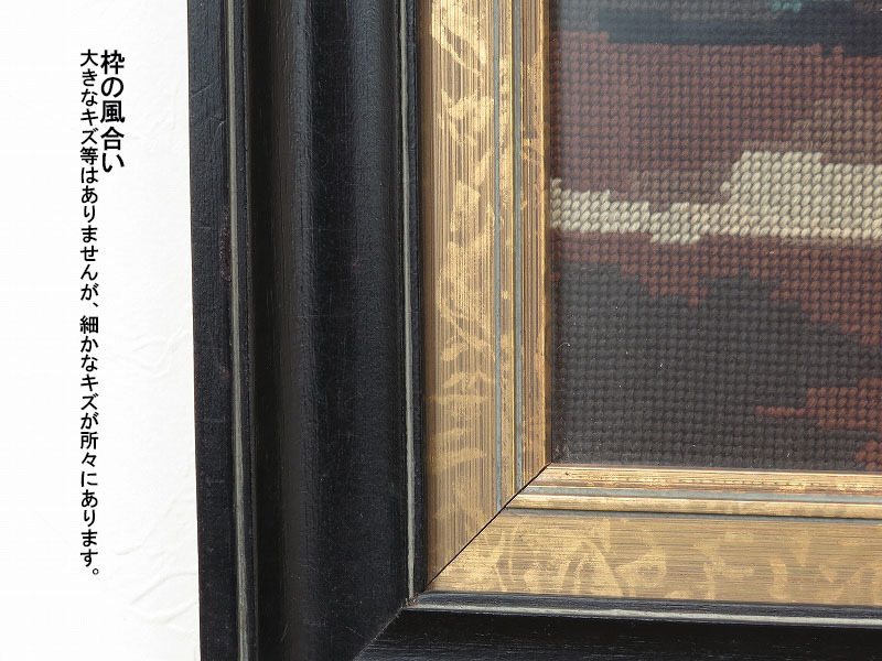 ニードルポイント刺繍の古い額/ゴブラン織り/壁掛け/吊り下げ/インテリア/店舗什器/ディスプレイ/フランスのアンティーク雑貨/A-2715