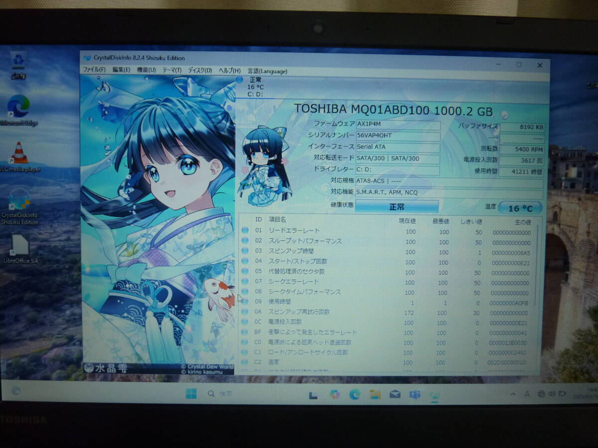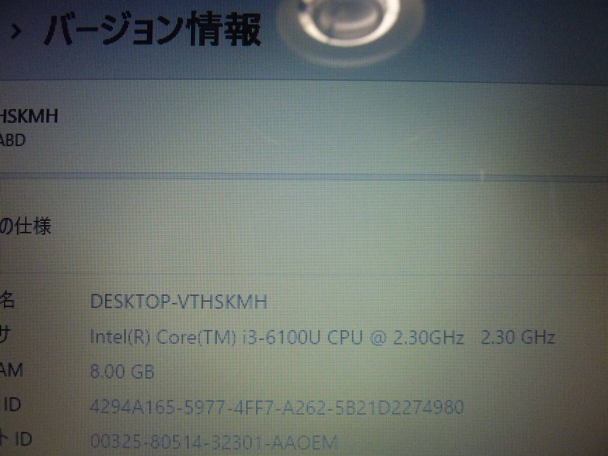 東芝製 PT45ABD-SJA2 T45/ABD HDD1TB メモリ8GB Core i3 6100U 2.3GHz Windows11Home (24H2) クリーンインストール済みのジャンク扱い品